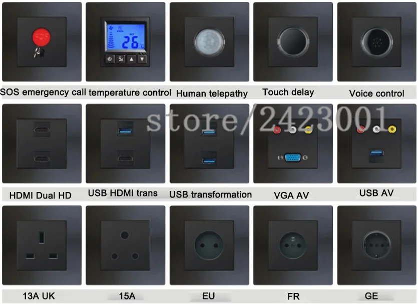 Черный зеркальный переключатель полный тип 86 Бытовая настенная ТВ сетевая кабельная розетка светодиодный светильник-точечный переключатель 17 типов s