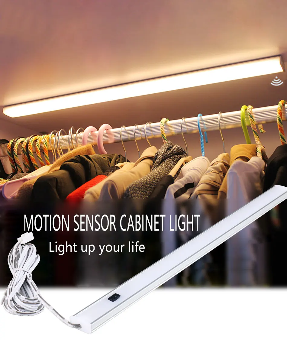 Белый светодиодный светильник для шкафа, 12 В, с датчиком движения