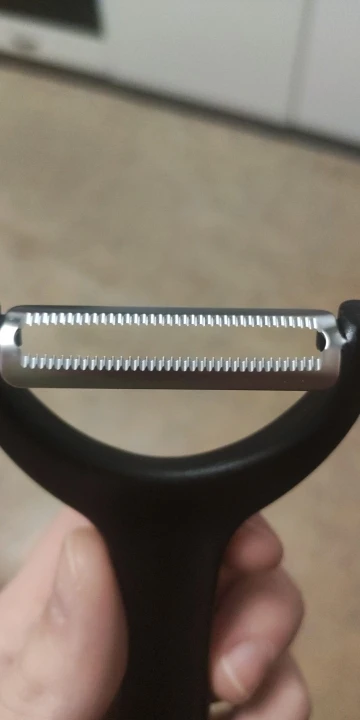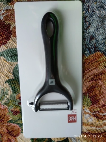 Самая удобная и качественная овощечистка из всех, какие мне попадались! Лезвия очень острые – берегите пальцы! Надеюсь, заточки хватит надолго благодаря форме лезвия. Снимает тонкий слой, очень легко, с минимальными усилиями. Рукоять прочная, не изгибается, внушает уверенность. Вот только логотип стирается мгновенно.