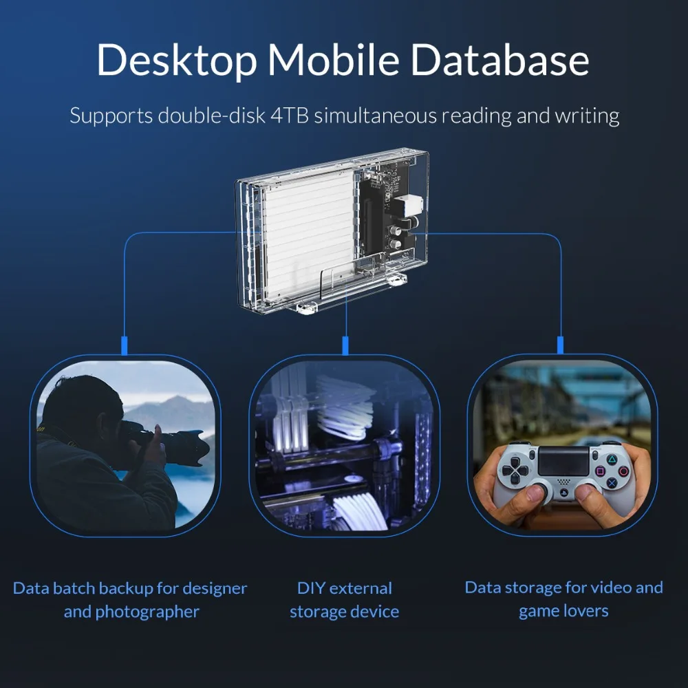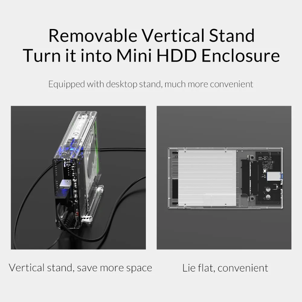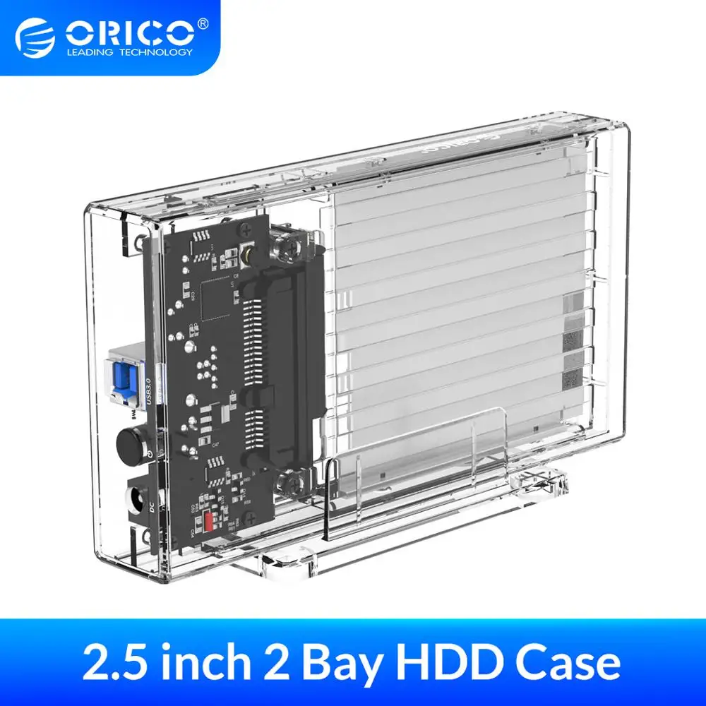 ORICO 2 Bay 2,5 ''HDD чехол SATA к USB 3,0 прозрачный жесткий диск корпус Поддержка UASP для 7-9,5 мм HDD SSD с 5В адаптером
