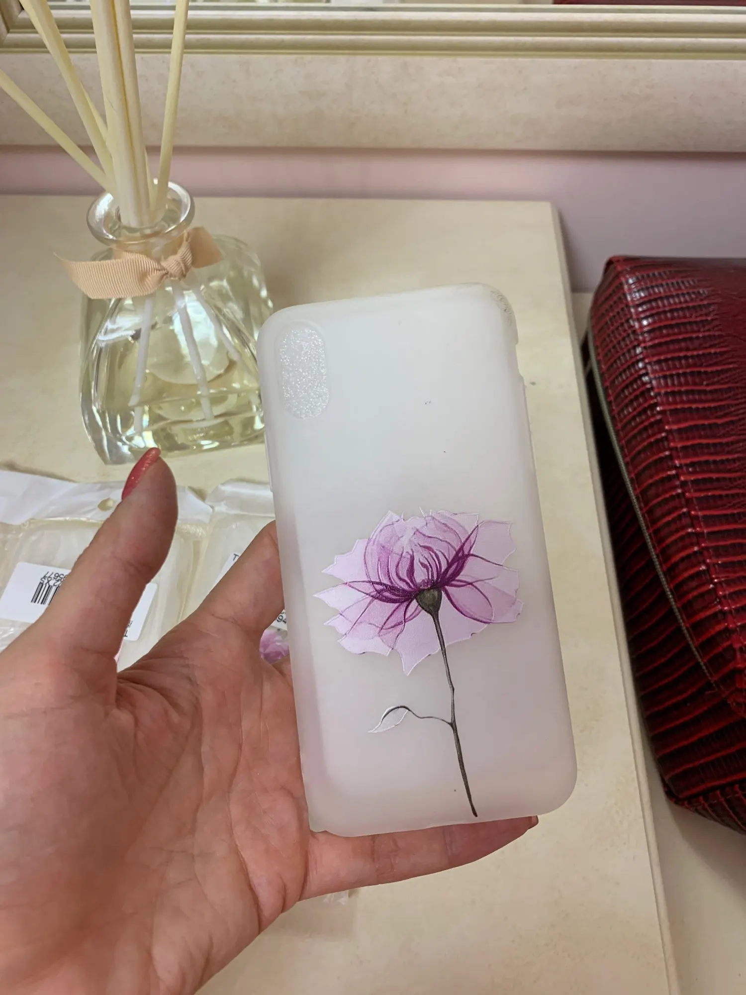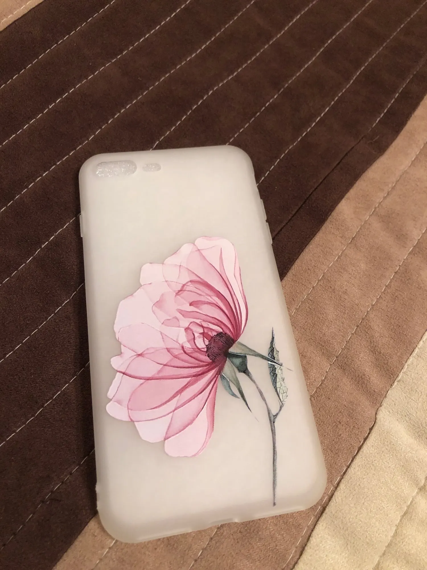 Очень красивый чехол, приятный на ощупь, в руке не скользит, на телефоне сидит плотно, брали на SE, советую.