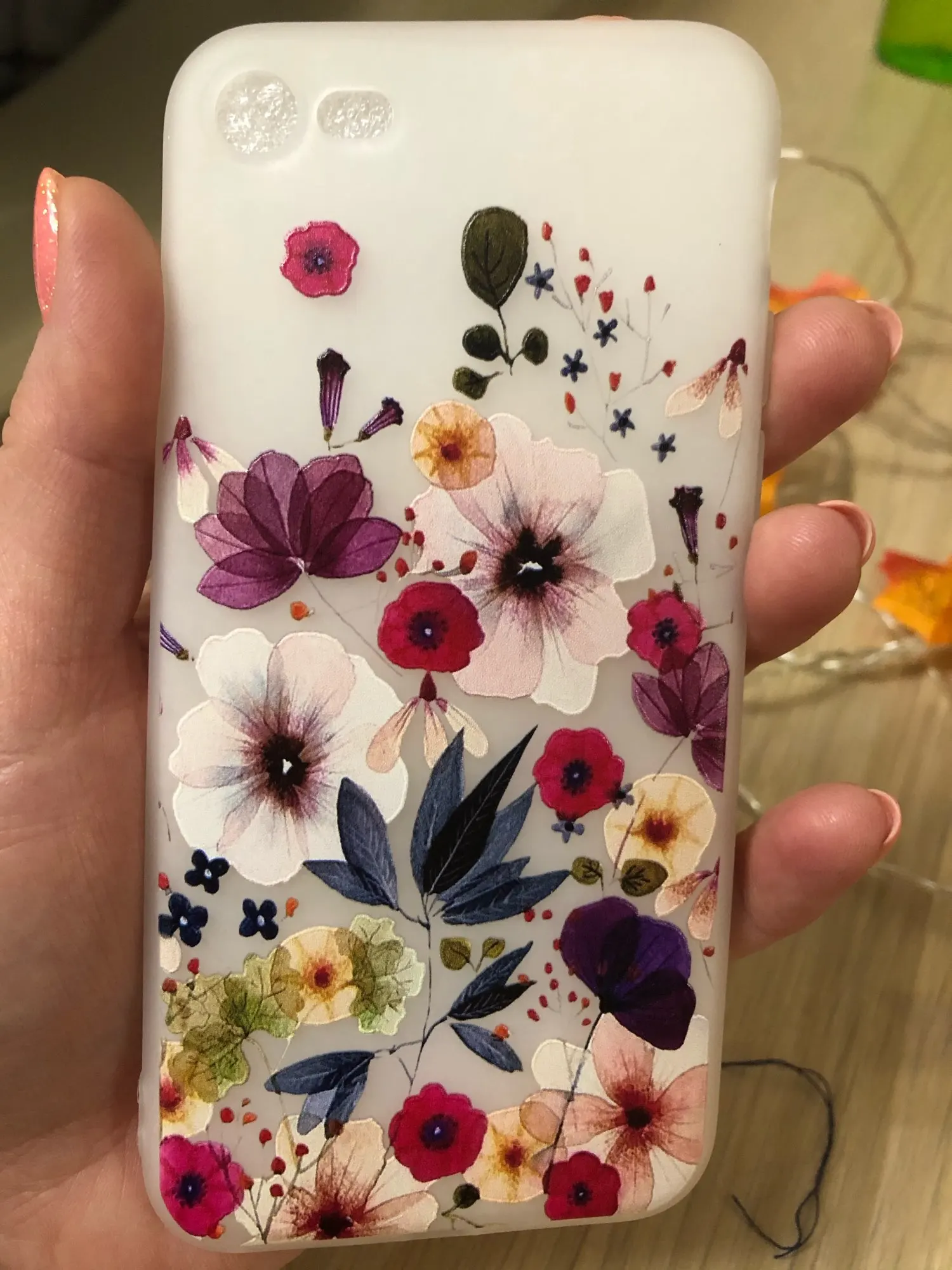 Мягкий и приятный чехол, в руке не скользит, отверстия под камеру и кнопки сделаны точно, рисунок в точности, как на фото. Чехол полупрозрачный, поэтому лучше всего подойдёт для моделей телефонов со светлым корпусом.