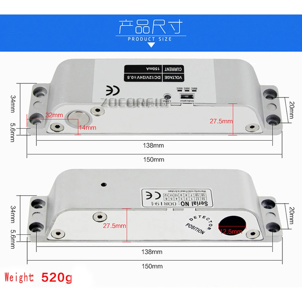 SY-3818 NC Электрический врезной замок постоянного тока 12 В с защитой от сбоя, электрический замок с откидным болтом для управления доступом к двери, система охранного замка дверей