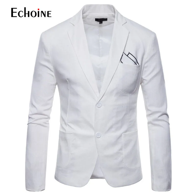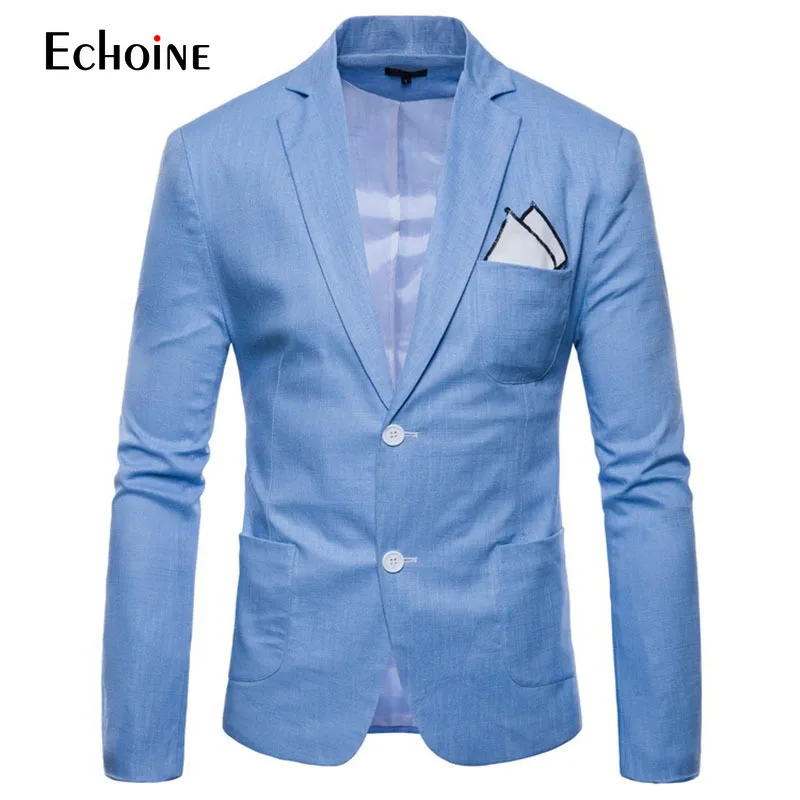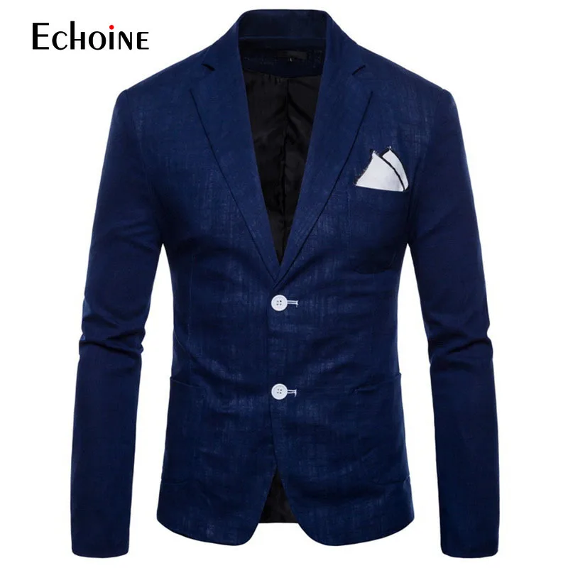 Модный Удобный летний мужской блейзер из хлопка и льна, мужская приталенная куртка, костюмы, блейзеры, мужской качественный повседневный костюм приблизительно 4XL