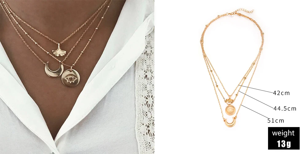 Цепочка Женская многослойная с подвесками, 24 вида