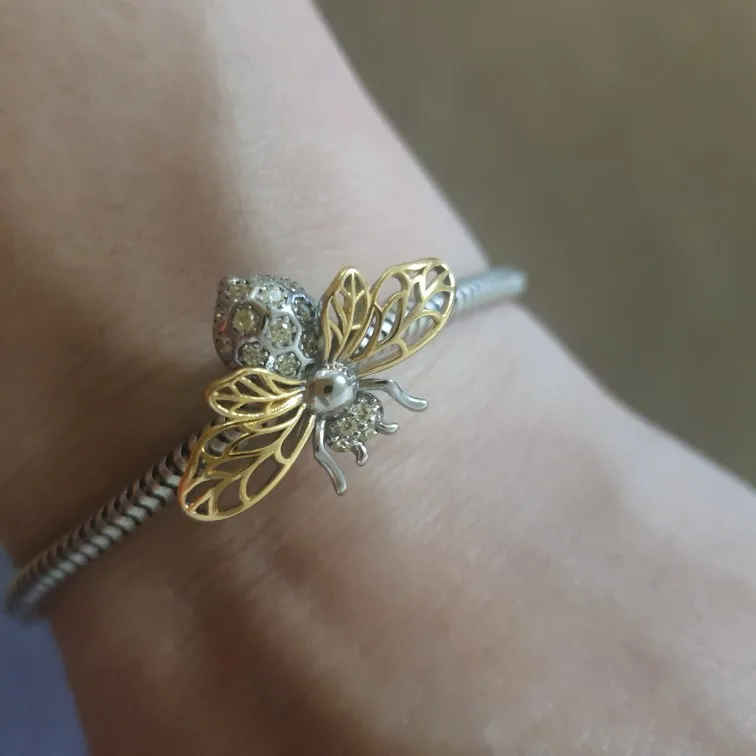 Супер! Не ожидала такого качества! Детально прорисованная пчелка, очень тонкие ажурные крылышки. Все камушки на месте, блестят-сверкают) сам шарм с силиконовой прослойкой, на мой браслет без ограничителей сел идеально. Пришёл в очень красивом мешочке. Стоит проба 925 и логотип бамоер. Супер довольна, моя горячая рекомендация! Этот продавец ещё ни разу не разочаровал.
