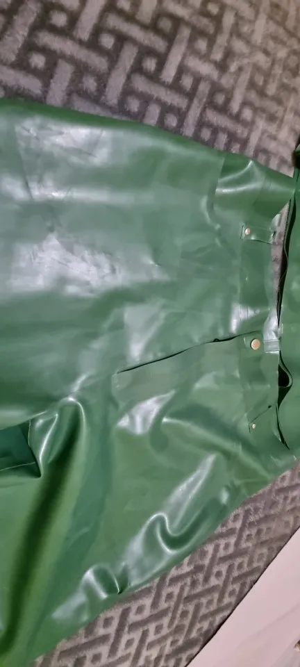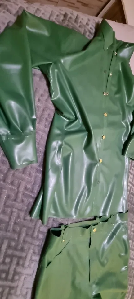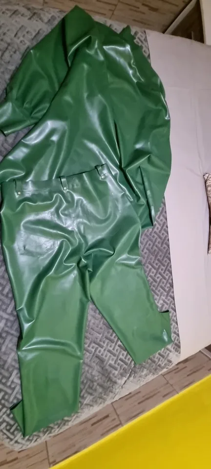 100% резиновая Мужская полицейская униформа, пальто и брюки, металлический зеленый костюм, Размер 0,4 мм