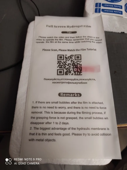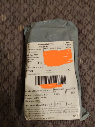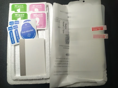 шло долго,без отслеживания,немного помучился с наклейкой,но получилось неплохо.лучше чем стекло которое постоянно отходило в одном углу(масла хватало не на долго).Надеюсь с гидрогелем такого не будет.Заказывал на редми нот 7.