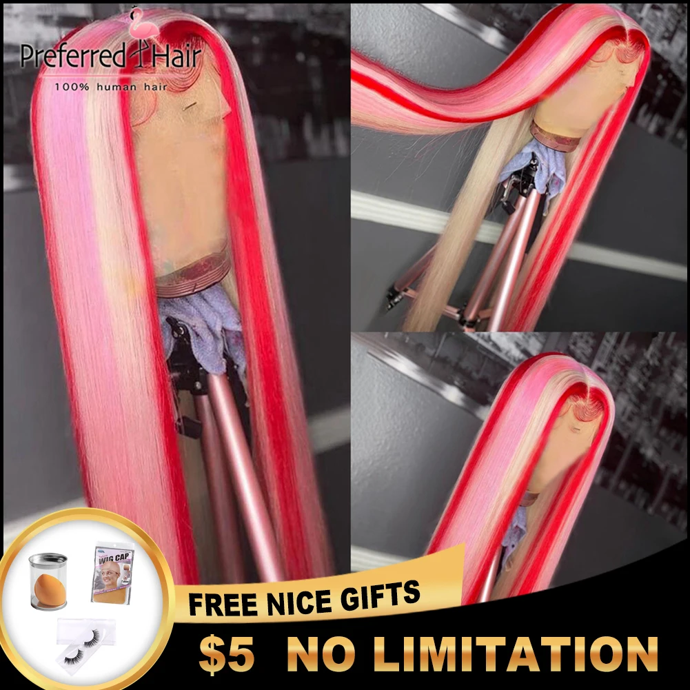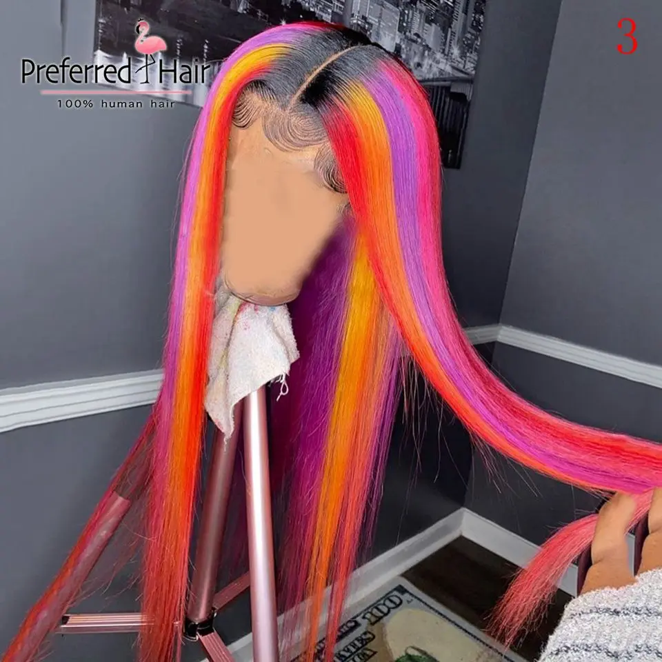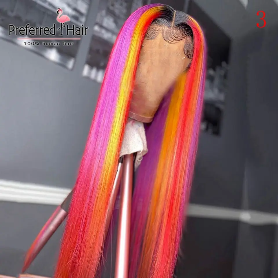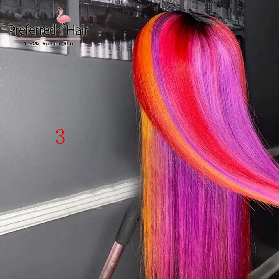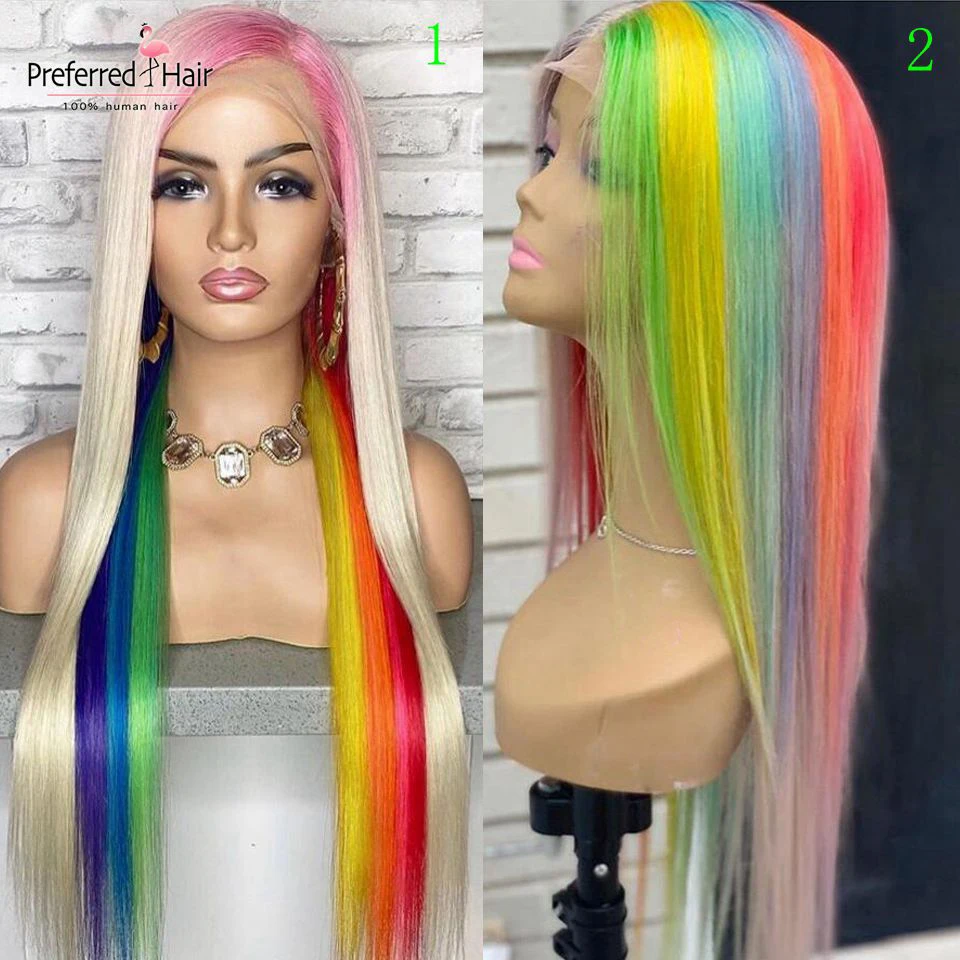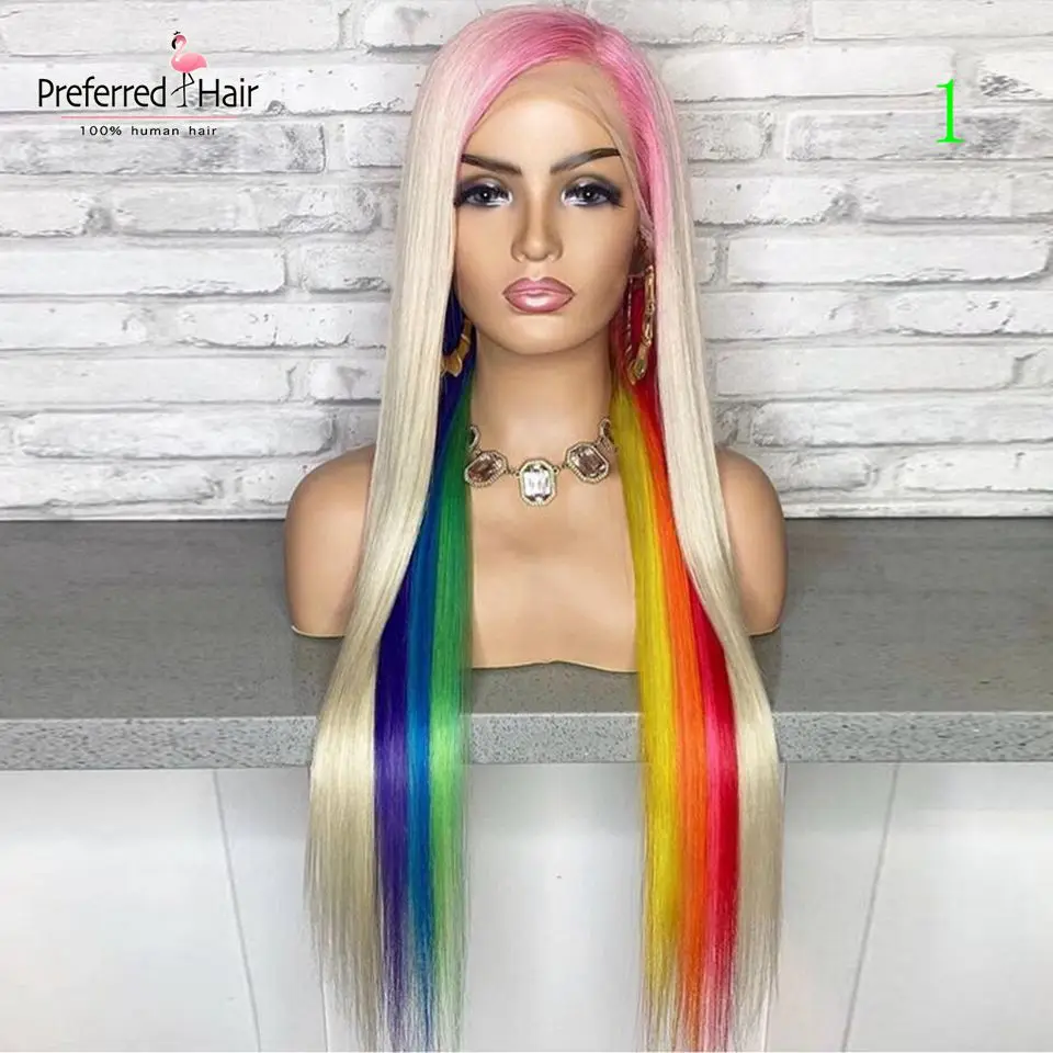 Волшебный парик из человеческих волос радужной расцветки, бразильский прямой парик с Реми, парик с эффектом омбре, зеленый, фиолетовый, розовый, хайлайтер, парики для черных женщин