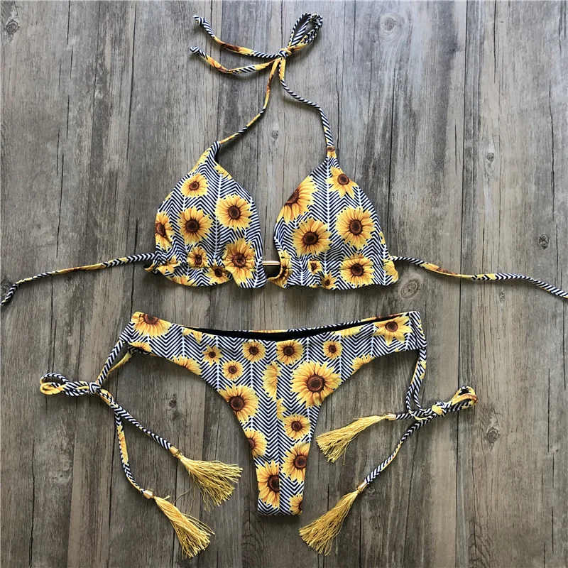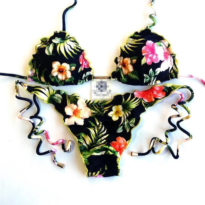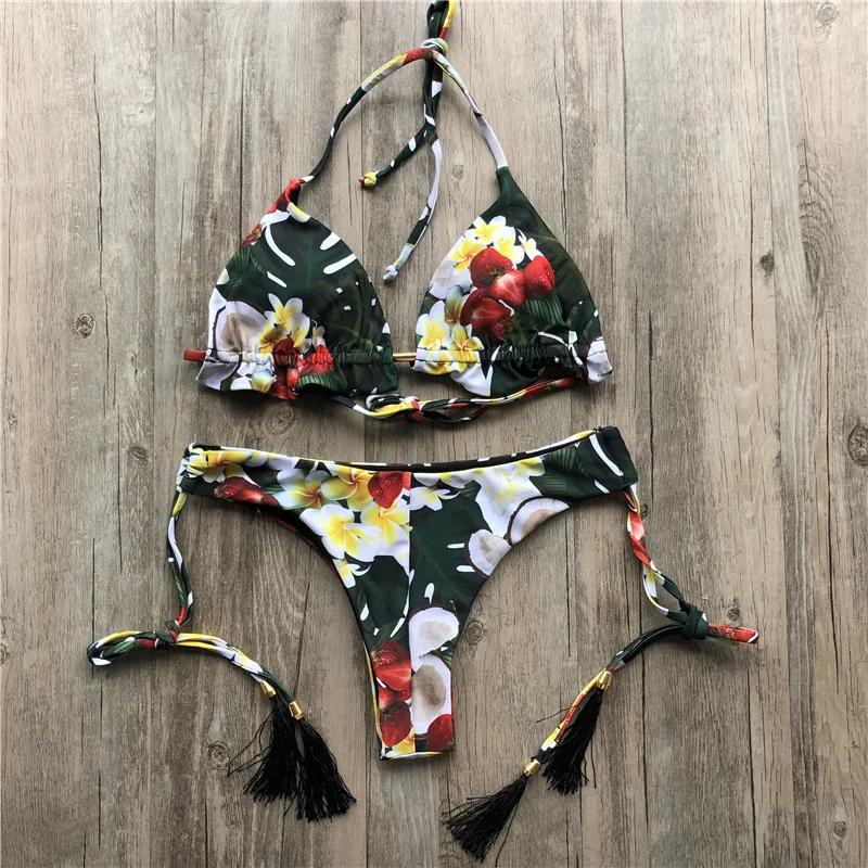 Сексуальный купальник Холтер женский Танга микро бикини пуш-ап 2020 Бразильское бикини тропические растения принт купальники стринги мини купальник