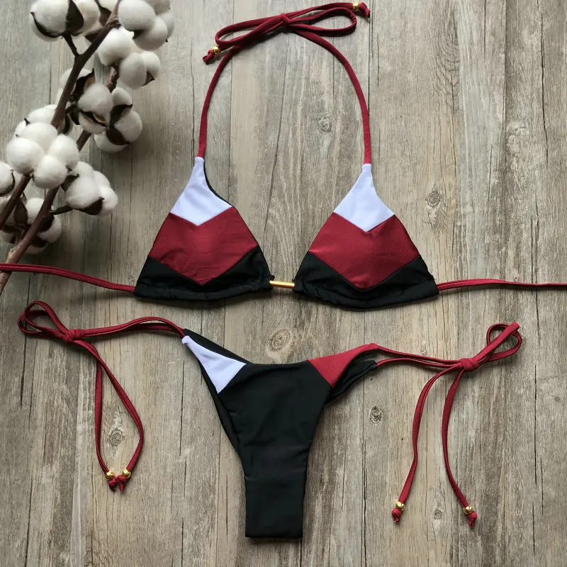 Брала размер М на параметры 85-70-95. Верх маленький, выглядывает грудь по бокам. Низ довольно открытый, но носить можно. Думаю, размер L был бы более хорошим. Качество и вид в реале соответствуют картинкам!