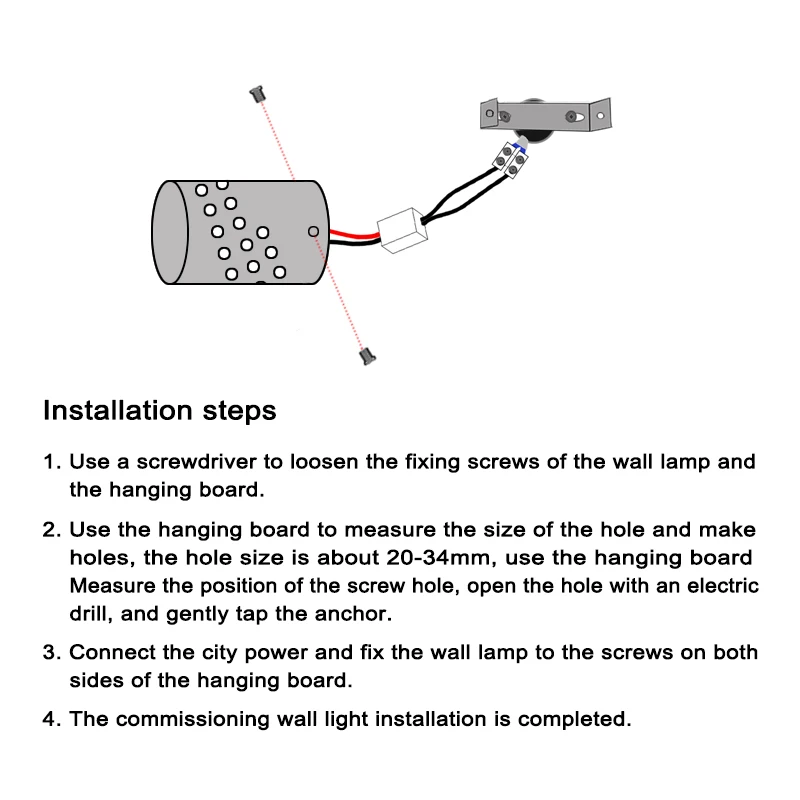 3. Подключите шнуры питания настенного светильника к цепям 110 В или 220 В (нет различия между линией в режиме реального времени и нулевой линией,