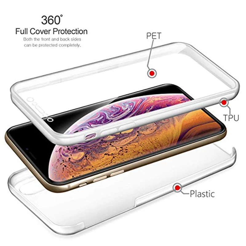 Новый прозрачный 360 двойной защитный чехол для iPhone X XR XS Max 8 7 6 6S Plus 5 5S SE, мягкий ТПУ спереди с жесткой задней крышкойПримечание: чехол высокой четкости. Не беспокойтесь о размытии