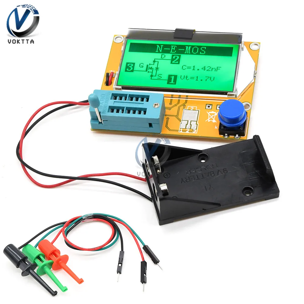 Цифровой тестер транзисторов LCR-T4 Mega328, измеритель емкости диодов, триодов, LCR T4, 12864, 9 В, ЖК-экран для MOSFETJFETPNPNPN