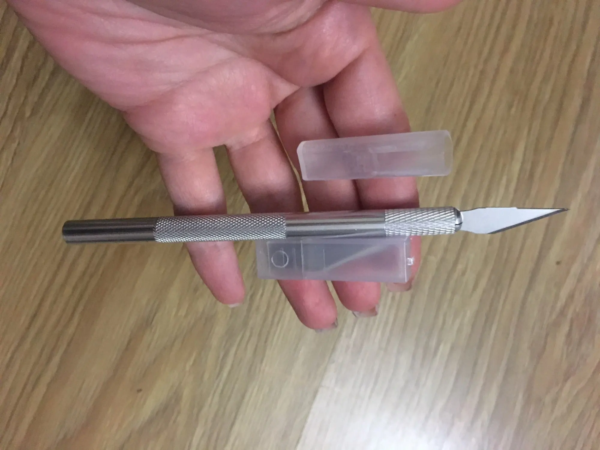 Нож шёл примерно месяц до СПб. В комплекте 5 дополнительных лезвий, как и заявлено. Острый. Удобная ручка. Похож на тот, что мы брали здесь в магазине, но этот лучше. Не отслеживался после отправки, пришёл сразу в почтовый ящик.