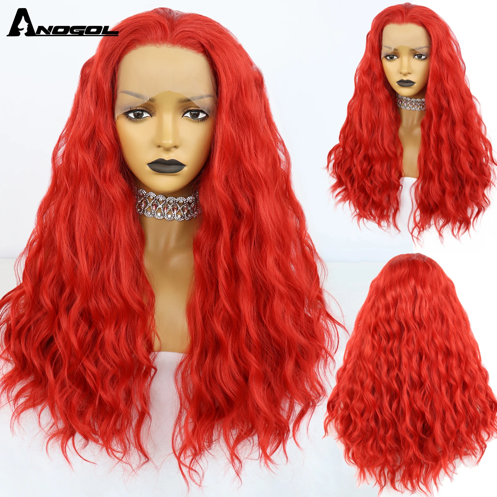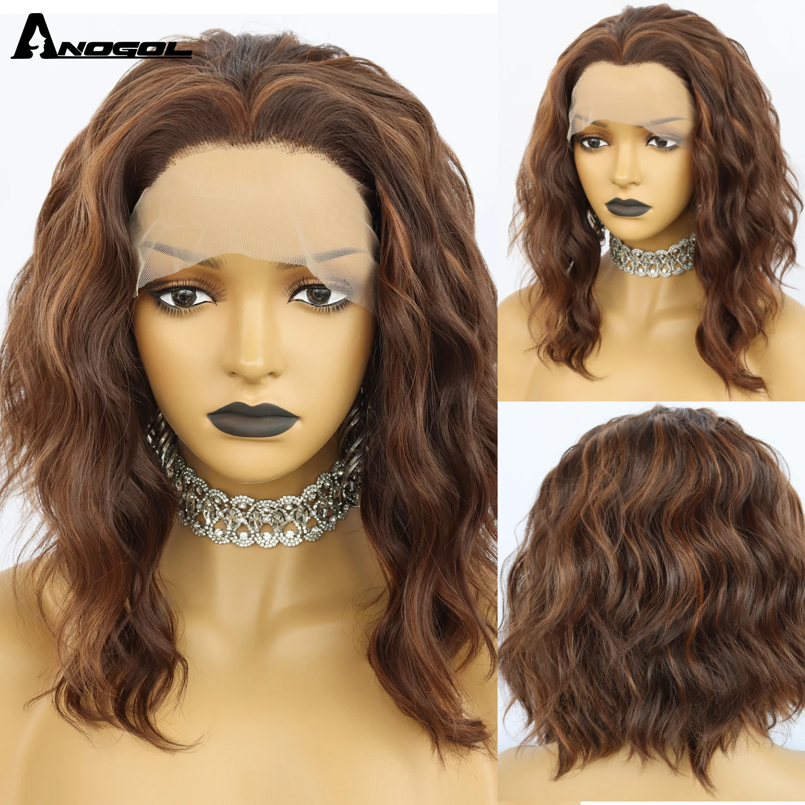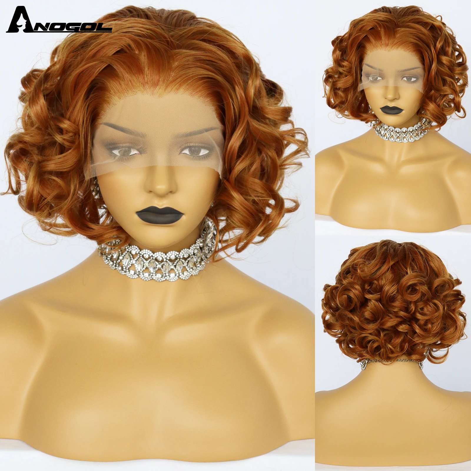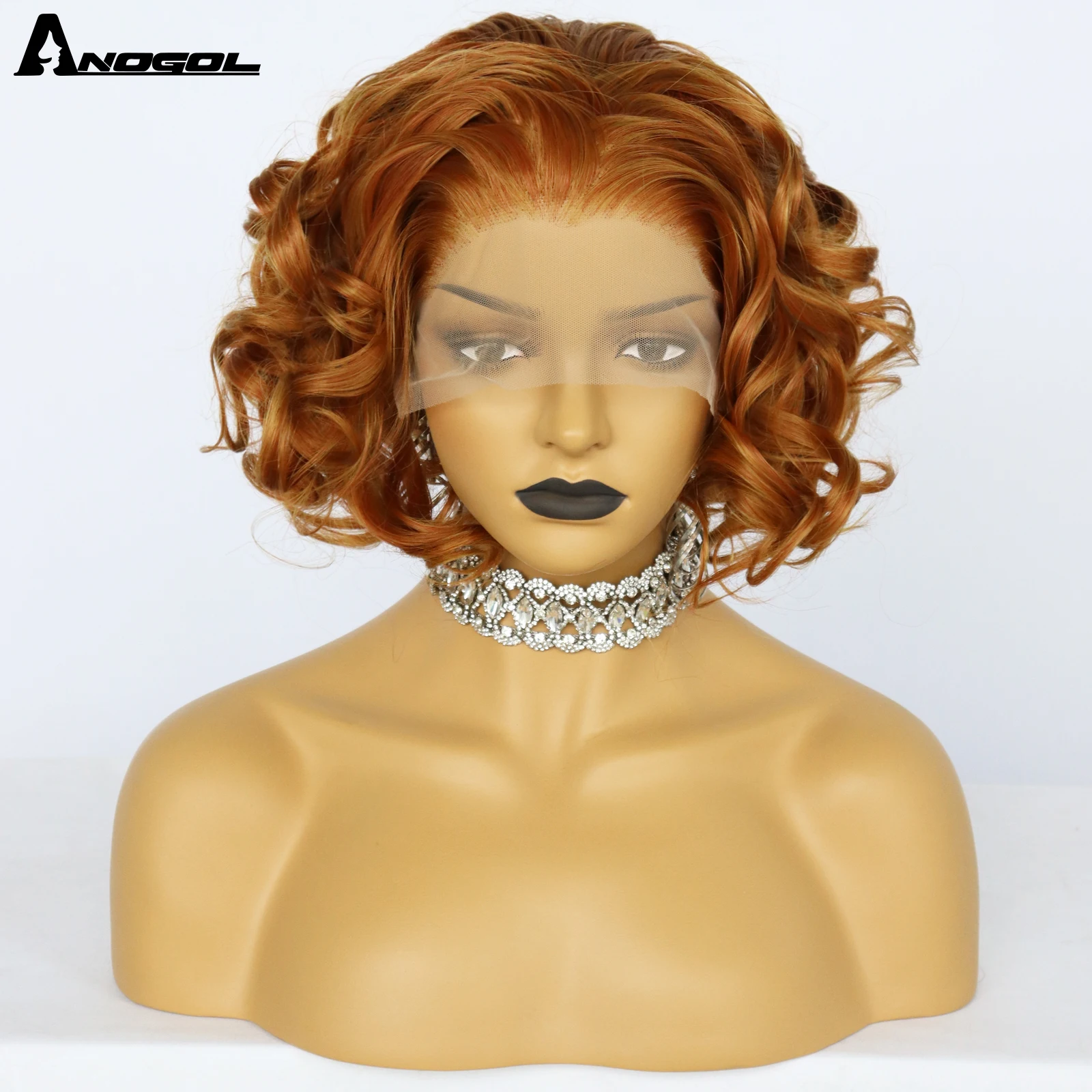 Парик Anogol 13X2.5 на сетке спереди, термостойкий синтетический, с кудрявыми волосами, с короткими волосами, для вечерние, оранжевого цвета