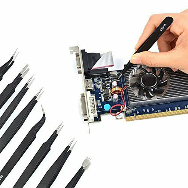 Антистатические антистатические пинцеты из нержавеющей стали для электроники, промышленный точный наконечник для ремонта телефона, ручной инструмент, набор пинцетов