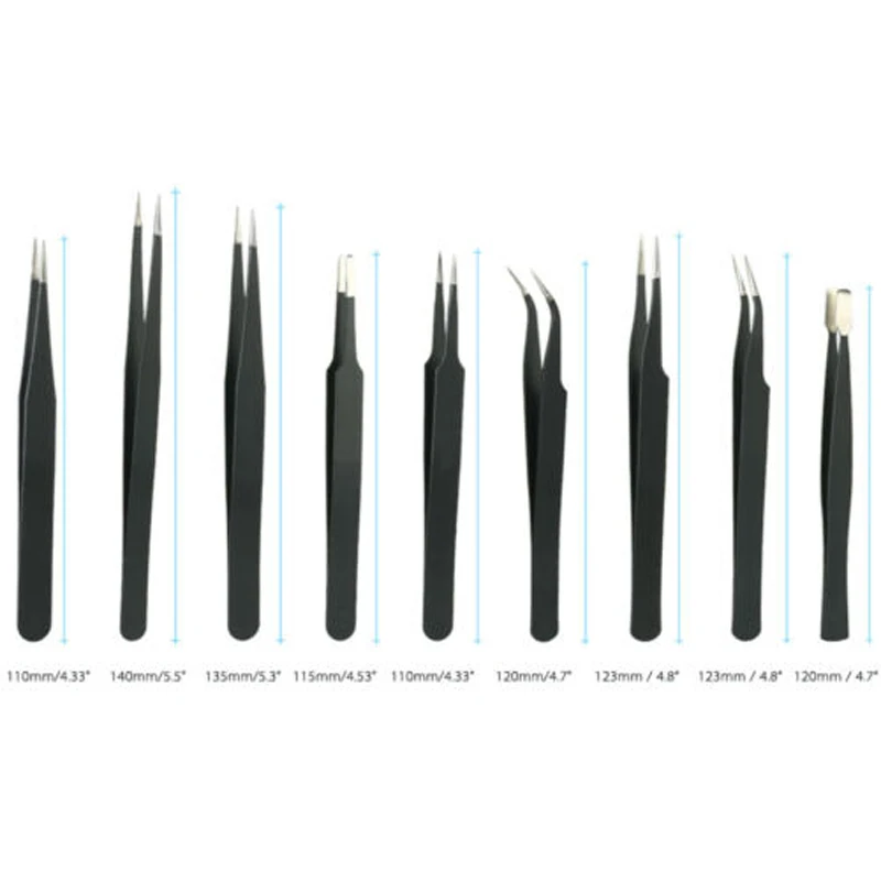 Новый 9 шт.компл. Антистатический пинцет из нержавеющей стали, набо...