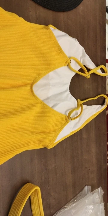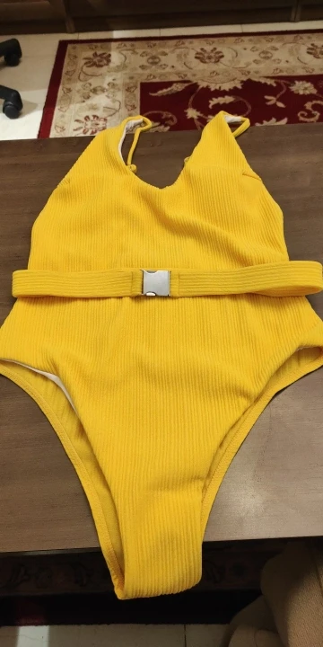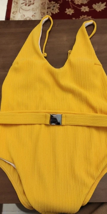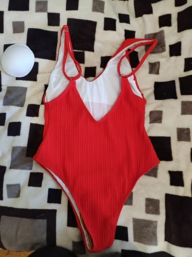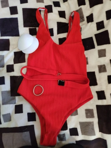 купальник выглядит как на фото, хотя цвет чуть более морковный в жизни, сидит как на модели, удачная посадка на попе, в меру завышенная талия, немного смущает лишь глубокий вырез в пройме, из которого видна часть груди, но на фото продавца это видно. мои параметры 86-65-90 рост 158(бретели пришлось подтянуть до конца)пряжка ремешка была в защитной пленке, белая подкладка есть только на передней части купальника вложены тонкие чашечки, но я их обычно вытаскиваю, так же продавец положил резинку в подарок . спасибо!!
