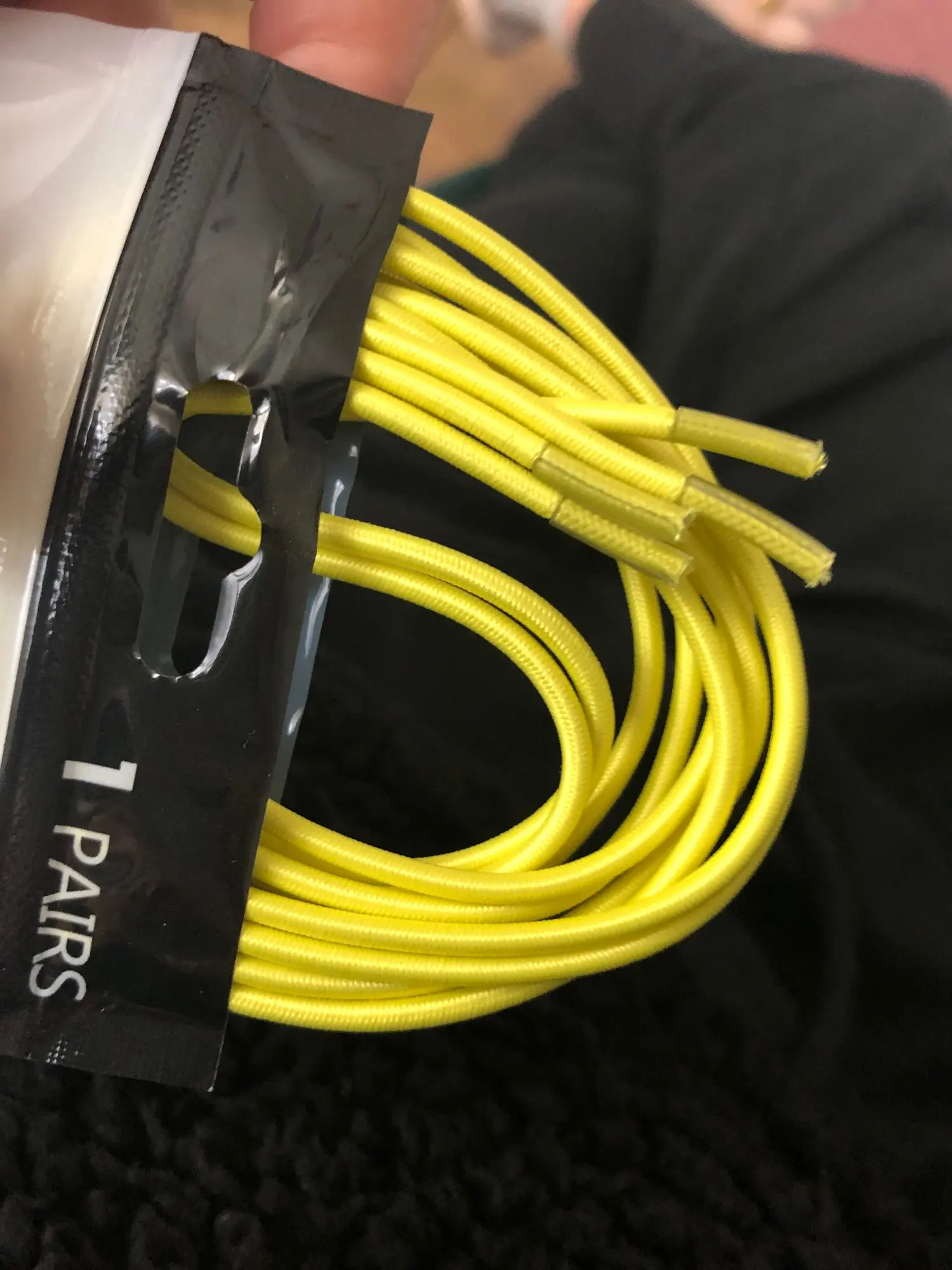 Очень хорошие, качественные шнурки. Резинка круглая, концы запаяны-удобно вставлять в обувь. Очень довольна, т.к завязал один раз всё!