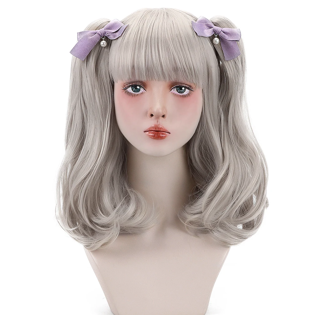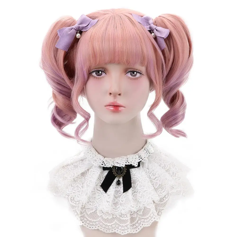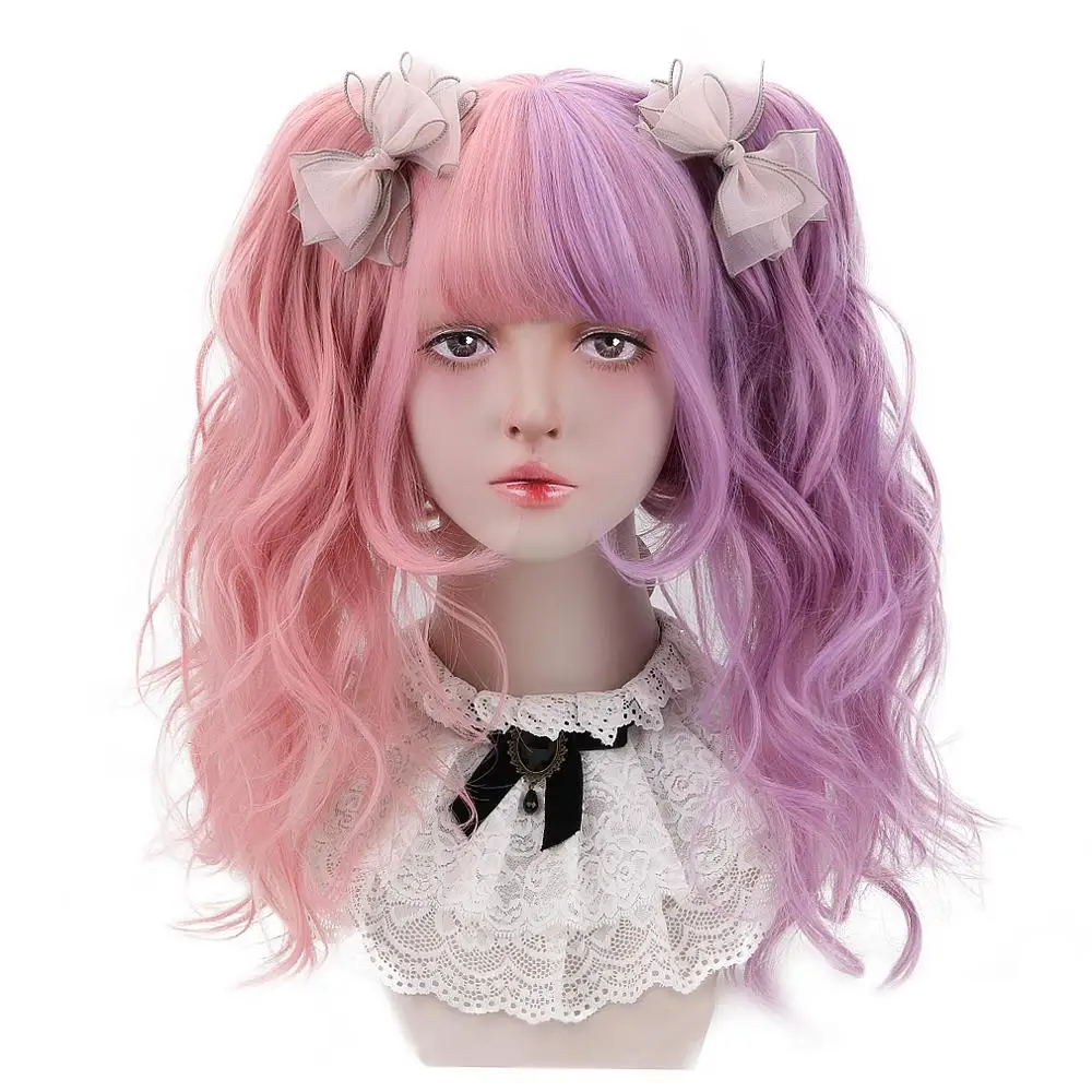 Короткие Волнистые парики Лолиты для косплея, синтетические волосы с 2 заколками, удлинитель волос для конского хвоста, детские розовые фиолетовые волосы 12 дюймов, парики боб, челка HP-L-05127,99 долларов США/Шт.