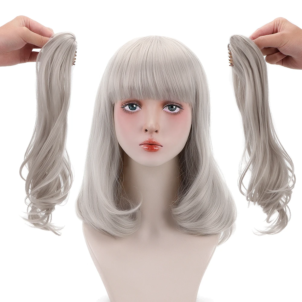 Бесплатная красота 19 дюймов длинные волнистые синтетические светлые волосы пепельного цвета парики с конским хвостом челки для женщин ежедневная Лолита косплей костюм вечерние