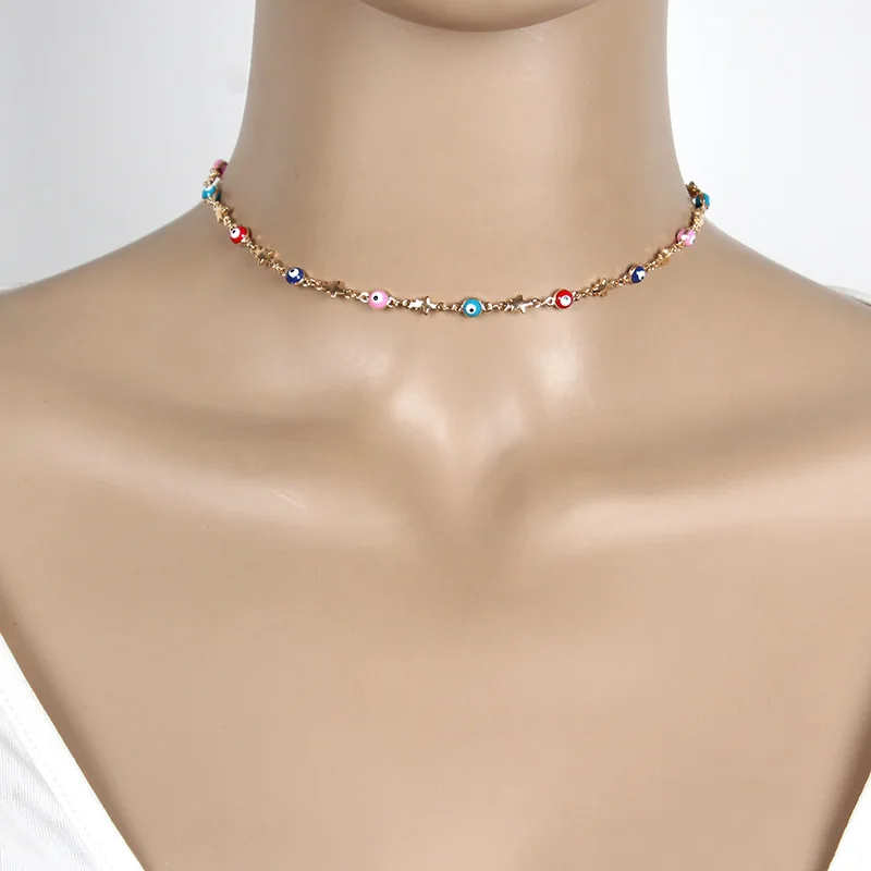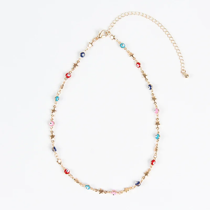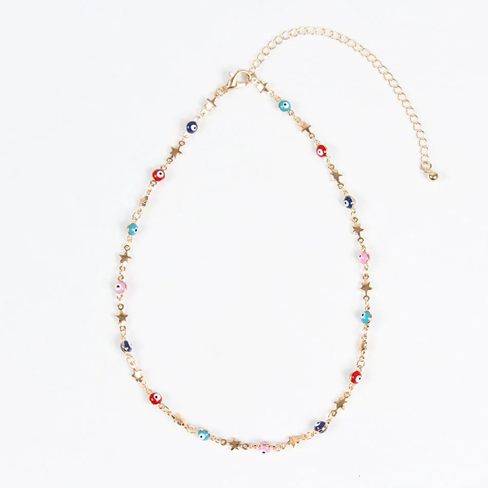 Модное винтажное золотое ожерелье с цепочкой в виде звезды, женское ювелирное изделие в стиле бохо, готическое ожерелье со сглаза, цветной камень, ожерелье-чокер, женский подарок