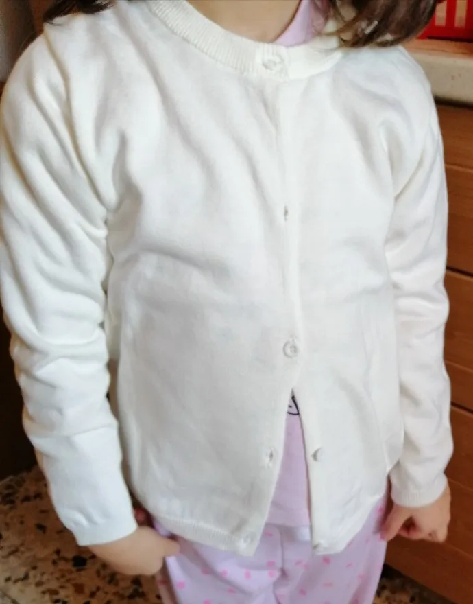 Красивый и аккуратный кардиган, хорошее качество изготовления и идеально подходит к платьям моей дочери. У нее draagmaat 98 направление 104, у меня есть 3T заказ. Рукава немного длинноваты, но не сломаются. Длина кардигана плотно прилегает. Даже на один размер больше, заказанный здесь, вы можете увидеть их быстро. Быстрая Доставка в течение 3 недель