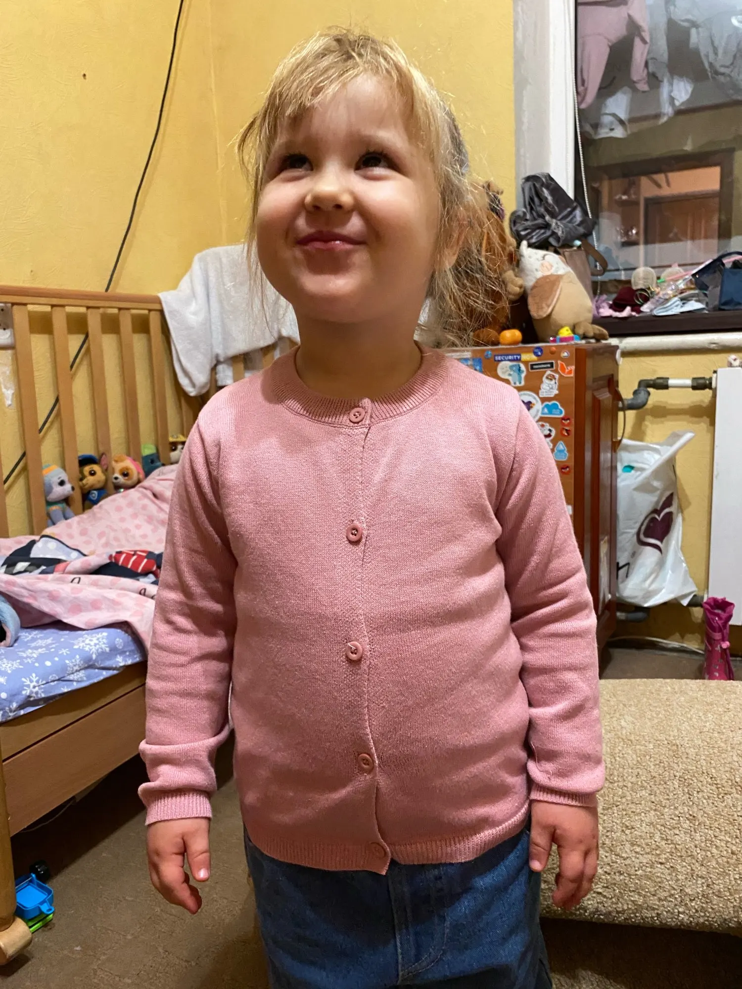 кофточка очень хорошая. Аккуратно пошита. Цвет соответствует. Брала 5Т на 4,5 года. Подошло идеально. Доставка быстрая,продавцу 5 звезд.