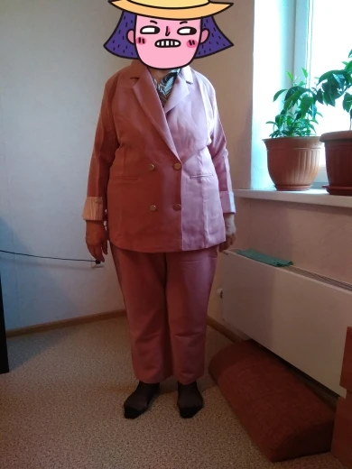 Всем, кто сомневается, берите. За свои деньги костюм хороший. Распорола карманы пиджака, ими реально можно пользоваться. Может, когда они защиты, смотрится лучше, но с карманами функциональнее. Лучше не гладить, а отпаривать костюм. Ткань типо искусственного крепдышина, на жаркое лето просто идеально. Беру уже второй костюм. Этот голубой, первый был розовый. Розовый брала у другого продавца. Голубой по размеру немного меньше розового, хотя на бирках один и тот же 3xl. 3xl подойдёт на российский 52-54 размер, обхват бедер 108 см, обхват груди - 102 см. Доставка в Москву быстрая.