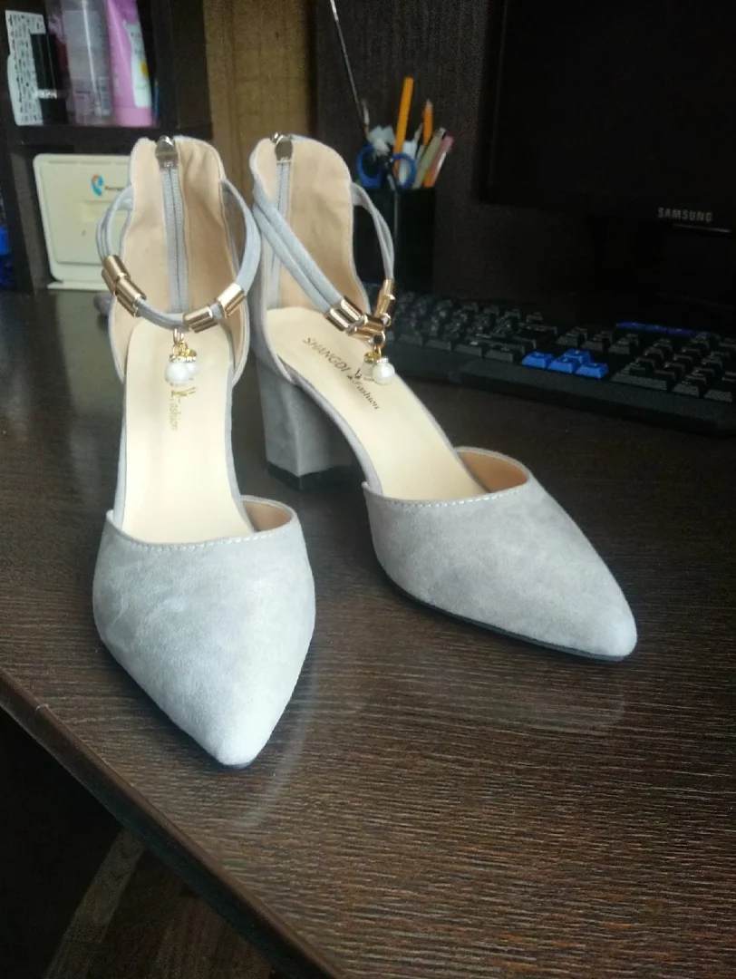 Женская обувь из флока на квадратном каблуке, лето 2019