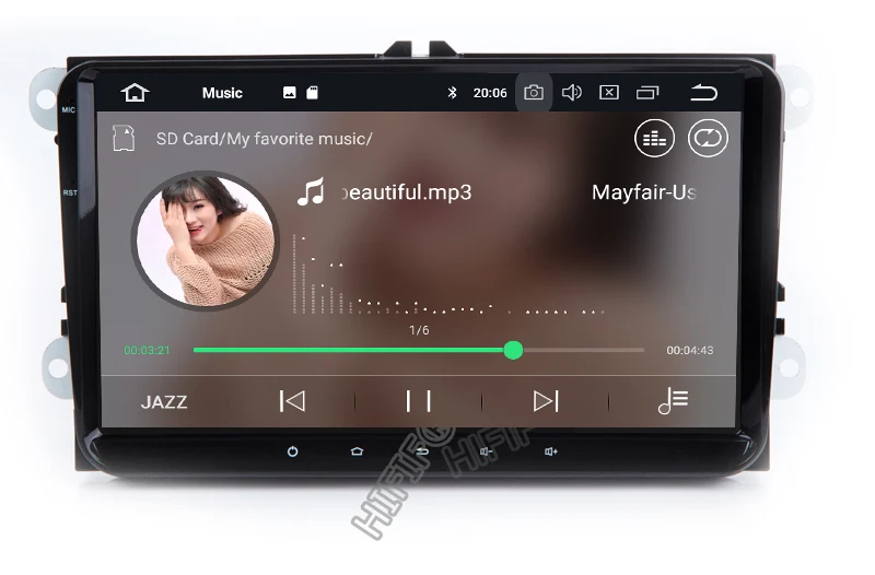 Поддержка эквалайзера 18 эквалайзеров для музыки, видеосъемки альбомов, названия песен, имени певца, лирической информации от проигрывателя по умолчанию.