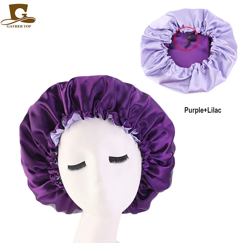 TJM-256D, двусторонний сатиновый капот, двойной слой с регулируемой пряжкой, одноцветная Женская кепка для ночного сна, мягкая Кепка для ухода за волосами, кепка Chemo