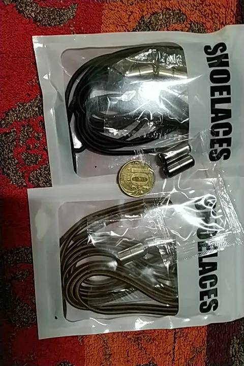 Отличные шнурки. Точнее резинки. Вроде прочные, нормально тянуться, но не слишком. В общем отлично. Длина на ботинки до щиколотки. Хотела померить длину, но уже вставила в ботинки, вытаскивать не буду. Цвет точно соответствует. Мысль с закручивающимся замком отличная! Лучше магнита. И не расшнуруется, даже если раскрутится. Я очень довольна! Закажу еще, если придумаю куда. Шло долго, больше месяца. Не отслеживалось даже когда пришло на почту.
