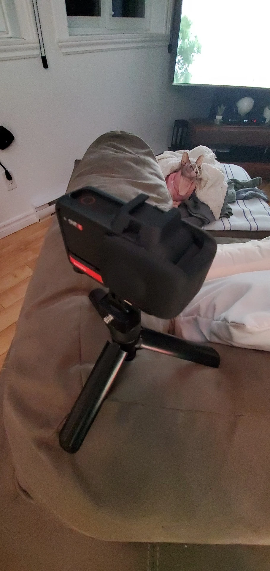 (Я получил только штатив пули времени, невидимая селфи-палка на фото является оригинальной Insta360.) Как описано, работает очень хорошо и выглядит хорошо. На ощупь немного тусклый, только 3 ноги открываются, но работает. Если вы хотите использовать его как большой штатив с помощью невидимой селфи-палки, я рекомендую получить реальный штатив, так как он много болтается, и вам будет трудно делать фотографии или видео.