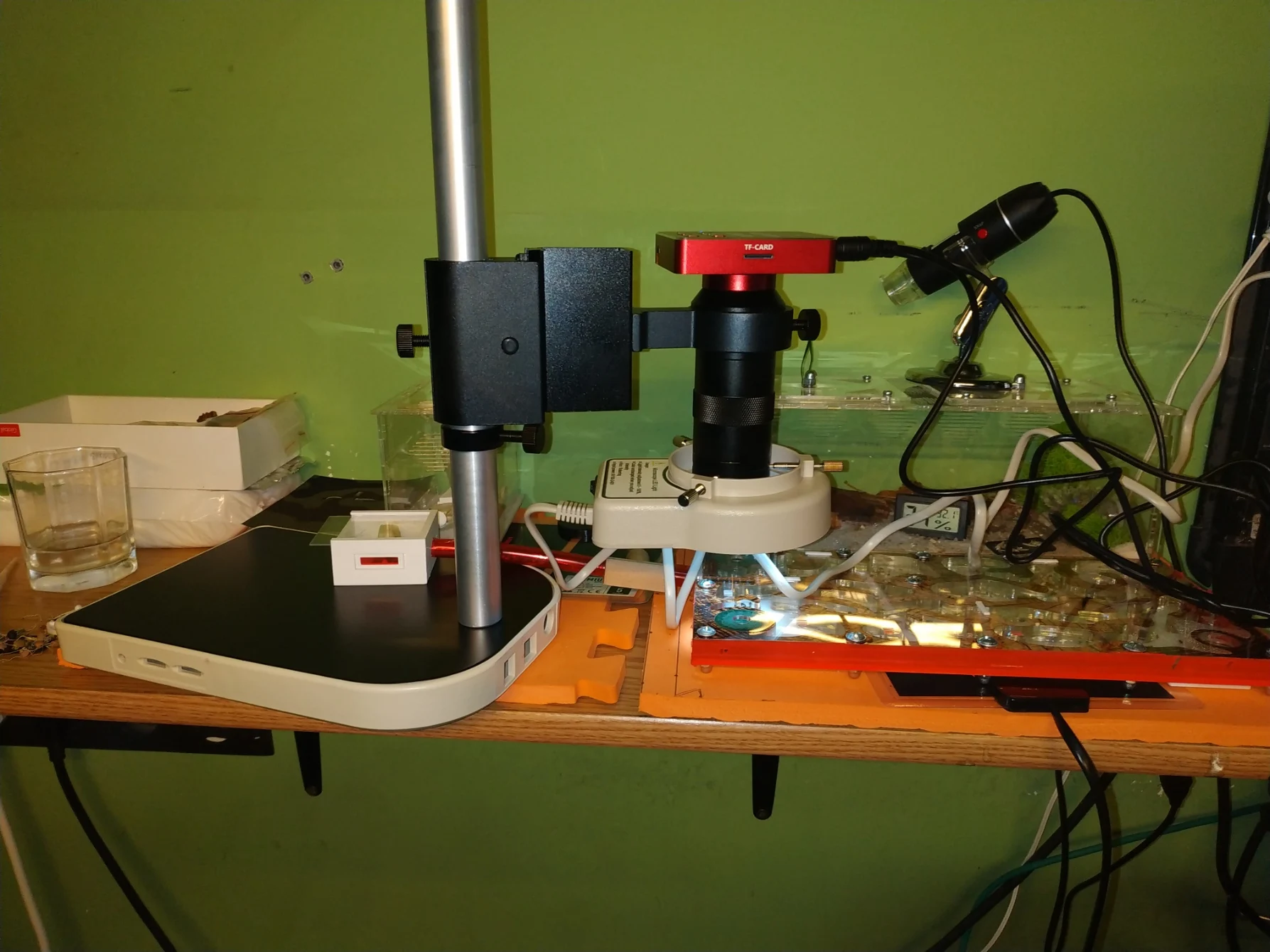 Информация о том, что пульт дистанционного управления поставляется без аккумулятора, отсутствует. Отдых в порядке. Но я рекомендую поставлять программное обеспечение как загружаемую ссылку. В настоящее время новейшие Ноутбуки/ПК поставляются без оптического привода. О микроскопе: хорошее крепление, вы можете легко изменить управление зумом, чтобы получить четкое изображение (как в объективе, так и с роликом высоты. Потому что он был установлен на вертикальной алюминиевой трубке, вы можете свернуть его и разместить так же, как я (на фото), так что его можно использовать и таким образом. Против: -Хорошее соотношение зума, четкое изображение -Легкое управление для затачивания изображения Минус: -Вертикальное положение заблокировано винтом. Это не идеальное решение-почему бы не с колесом (повернуть вверх/вниз на всю высоту)? -Аккумулятор не входит в комплект -В комплект входит TF карта без каких-либо точек, которые вы можете получить, чтобы удалить ее. Трудно удалить его со слота для карты.