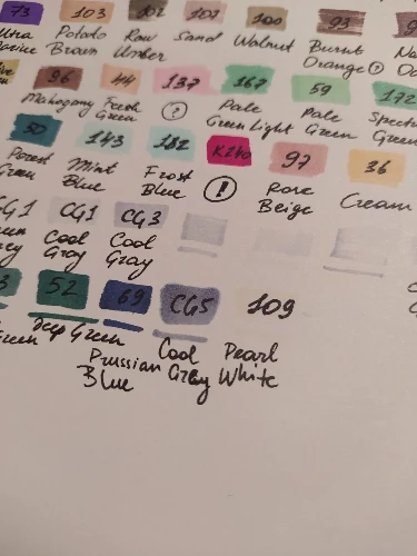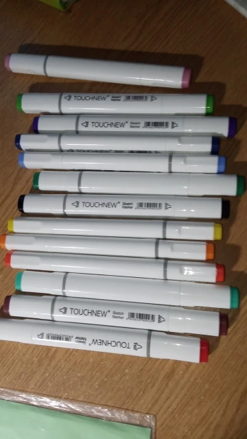 Заказ пришёл быстро, отслеживался. Все маркеры пришли по списку, без ошибок, все свежие. Если что, советую делать выкраску, потому что у этой фирмы цвета на крышках не совпадают с тем, что будет на бумаге! В остальном как любителя устраивают более чем, долго не сохнут. Пользуюсь ещё первым набором то ли второй, то ли третий год.