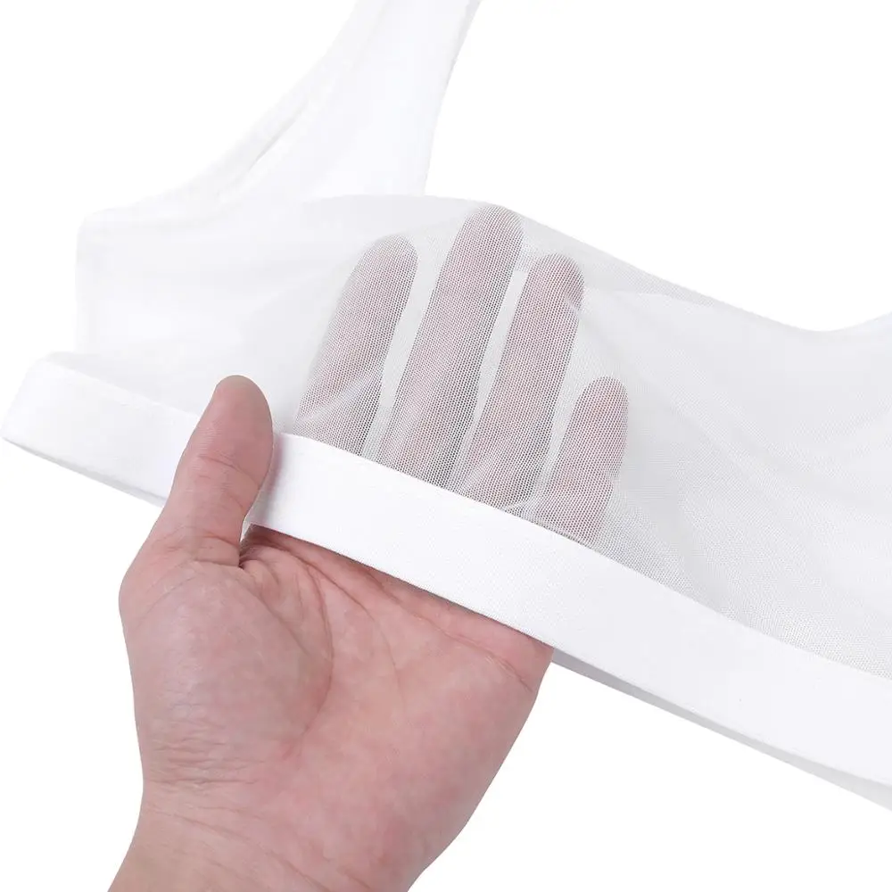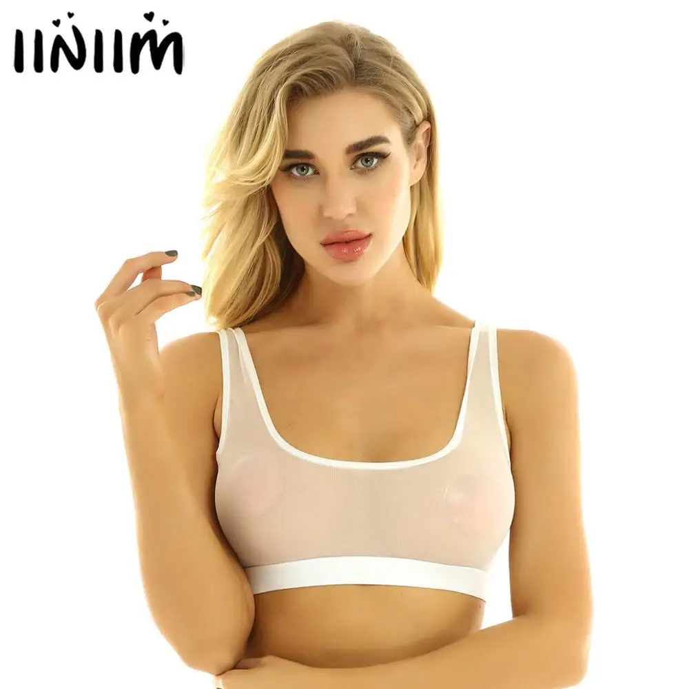 Женское сексуальное нижнее белье iiniim, прозрачный сетчатый бюстгальтер без косточек с глубоким U-образным вырезом, майка, женские прозрачные укороченные топы