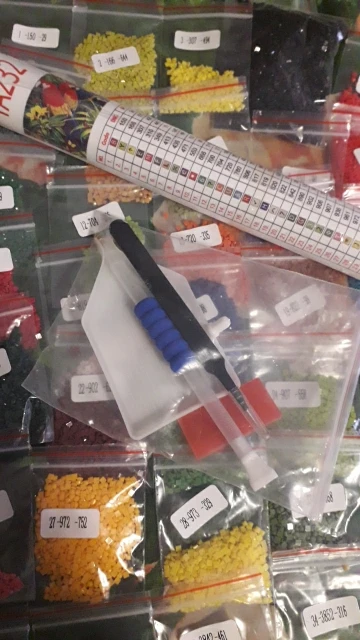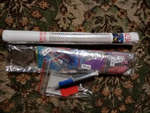Доставка меньше месяца до Ростова-на-Дону через пятёрочку в сборной посылке. Купила за 274 р плюс монетки, красота)) в наборе всё есть, пинцет черный прочный. В этом размере 34 цвета, яркие. неизвестно, когда смогу собрать картину, если её не подарю, так что вряд ли получится выложить фото готовой картины, но если вдруг - то обязательно )) Продавцу огромное спасибо! рекомендую!