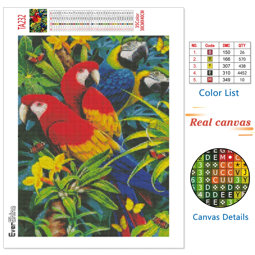 EverShine Алмазная Вышивка Полный дисплей алмазная живопись Фотографии попугая Стразы птица Алмазная мозаика художественная вышивка крестиком