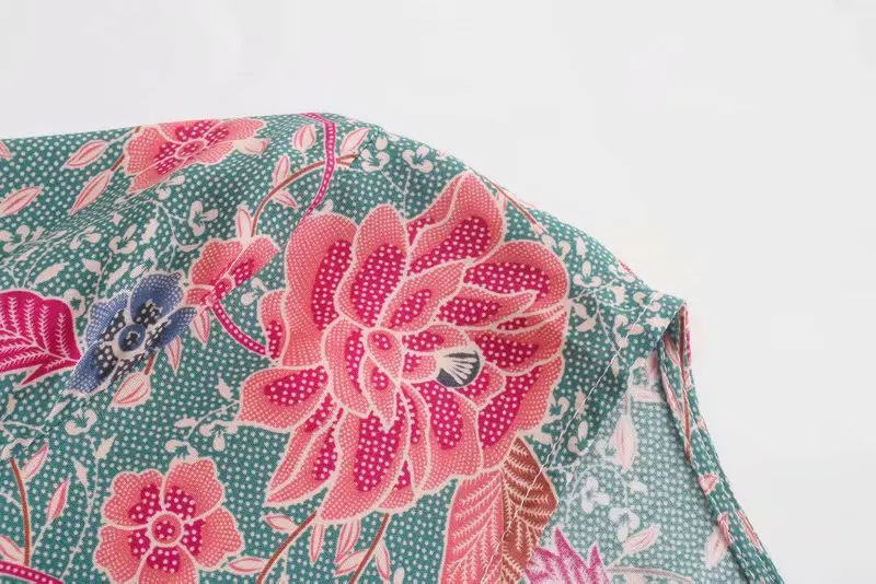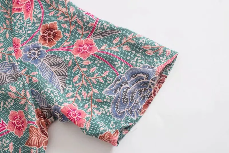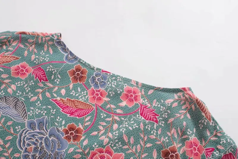 Винтажная шикарная женская зеленая богемная блузка с цветочным прин...
