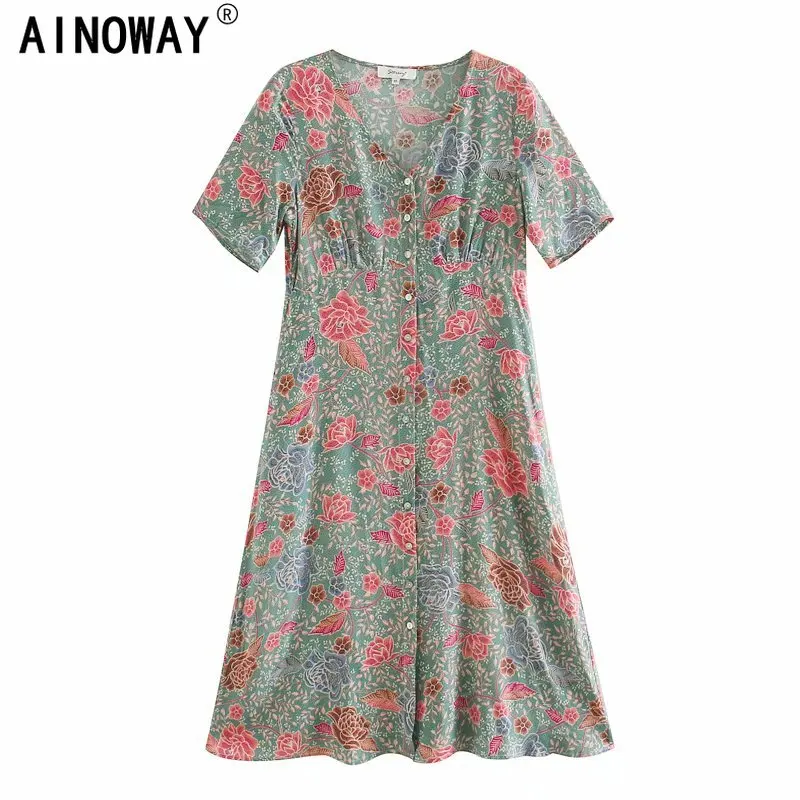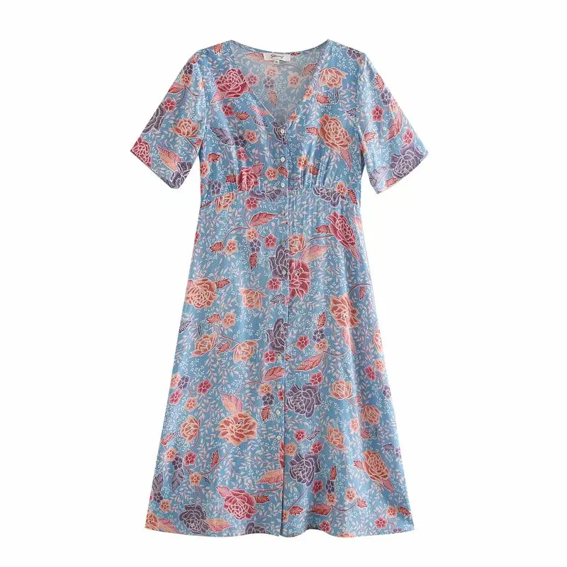 Женское винтажное платье-мини с цветочным принтом, V-образным вырез...