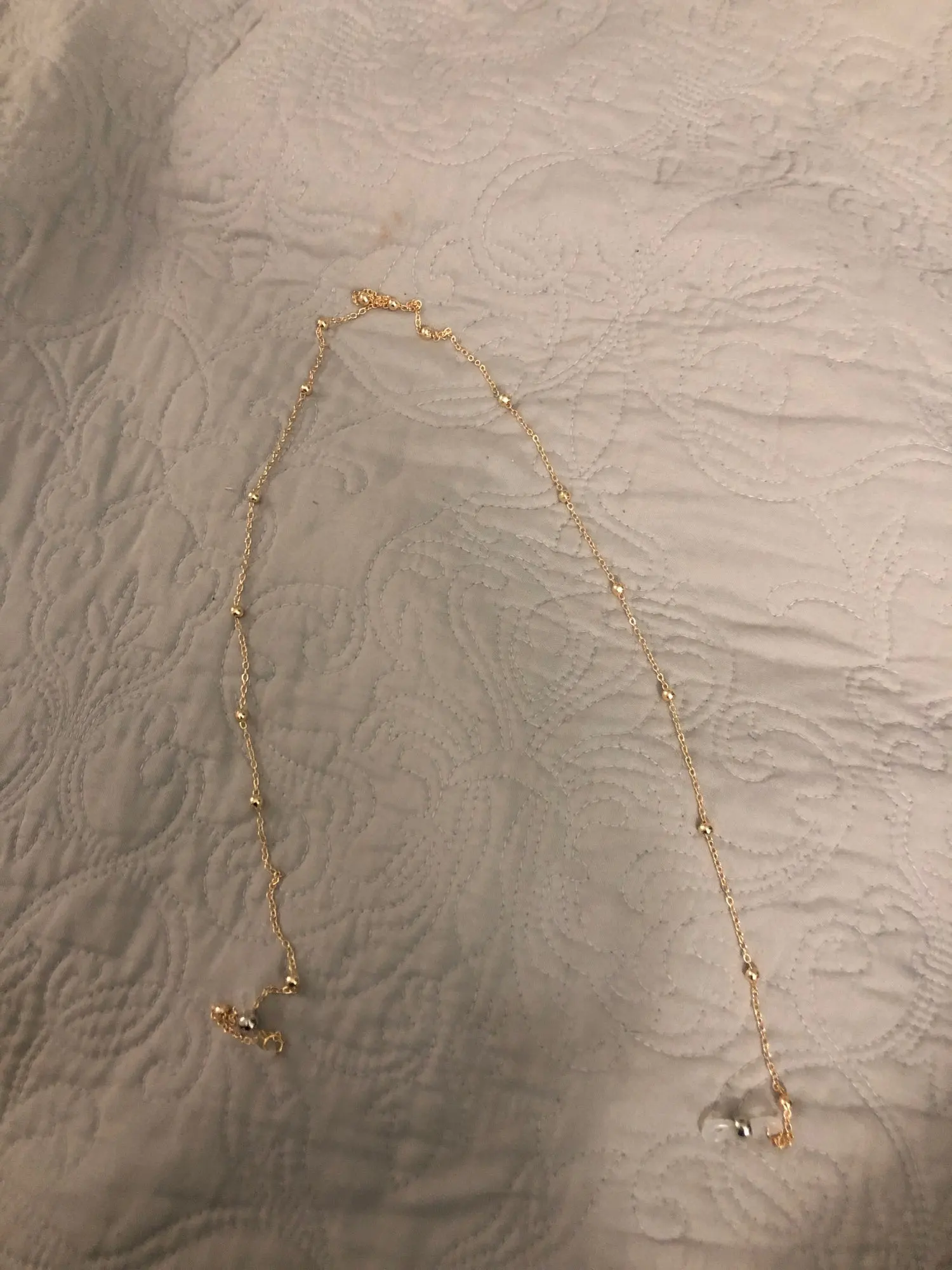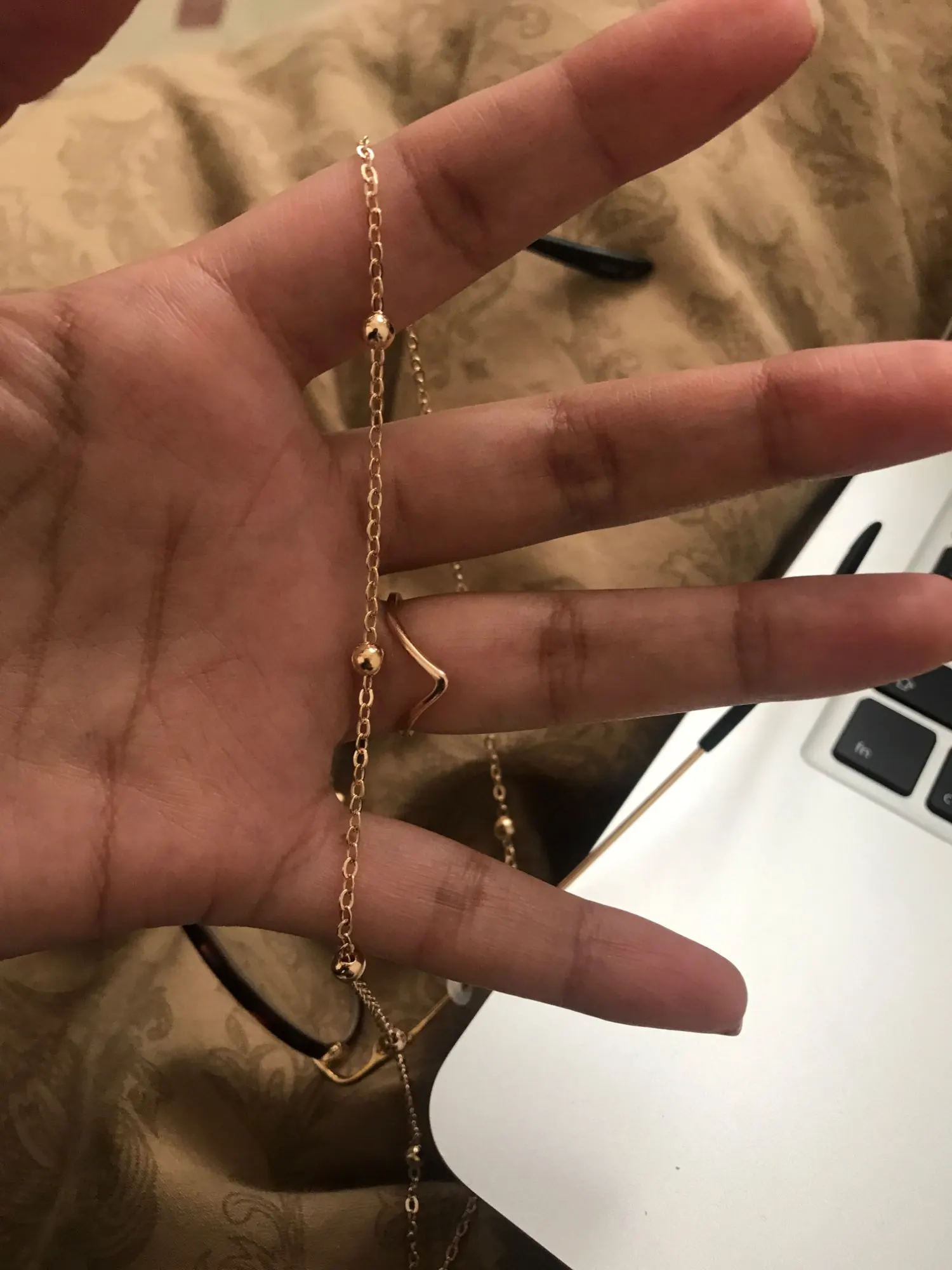 Странно, конечно, что цепь золотая, а шарики на крепеже серебряные. Но все как на фото.