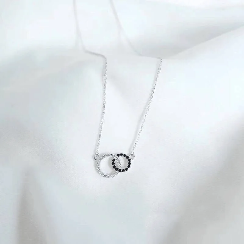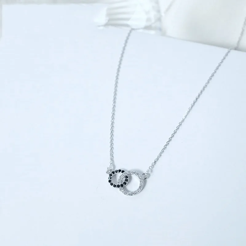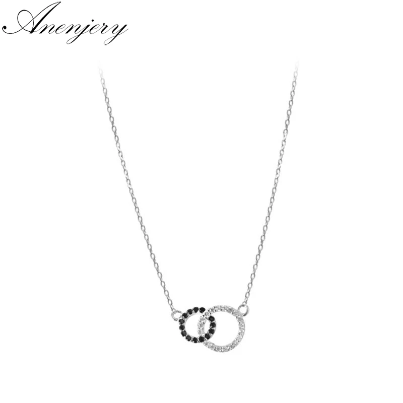 Женское Ожерелье с двойным кольцом ANENJERY, мозаичный Циркон из стерлингового серебра 925 пробы черного и белого цвета