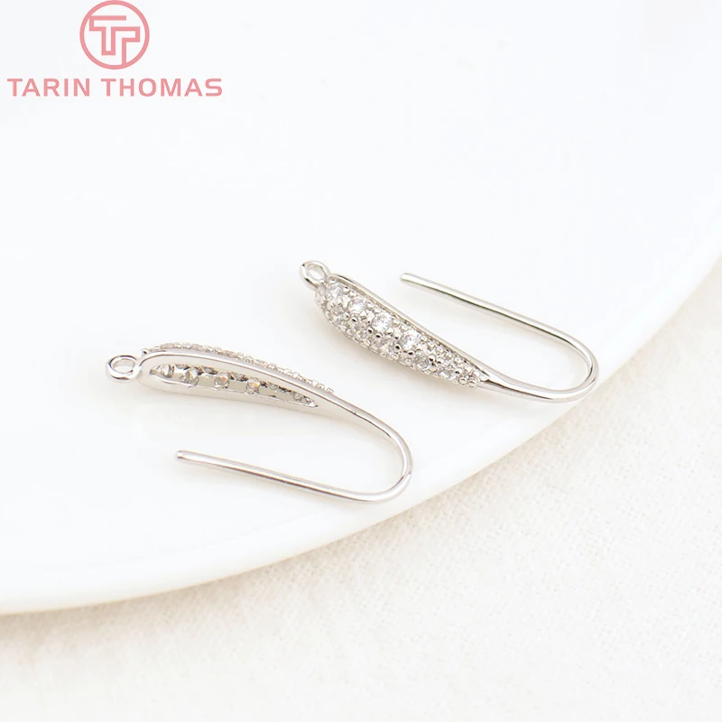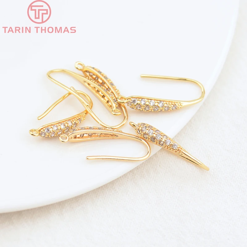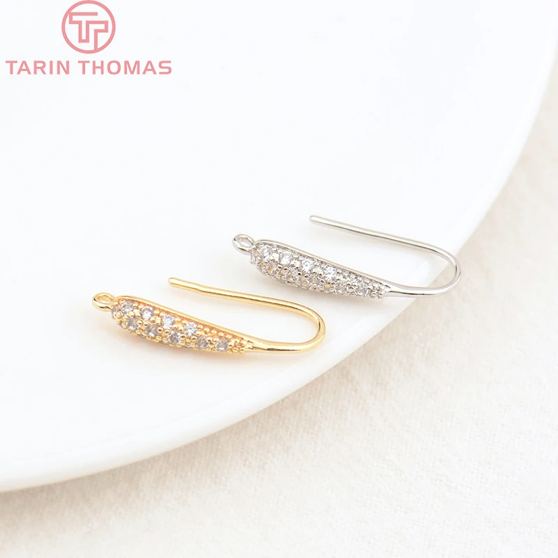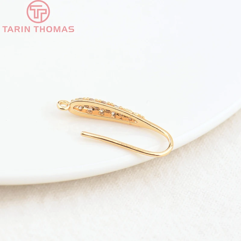 (2012)6 шт., Высота 19,5 мм, позолоченные латунные серьги с цирконом, 24 Кар, крючок, высокое качество, ювелирные изделия, серьги, аксессуары