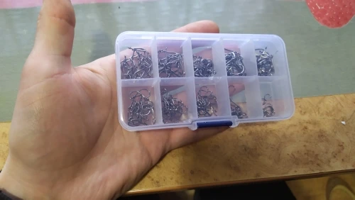Получил крючки достаточно быстро. Заказывал 200 шт. По факту 196 шт было в коробке. Ну да ладно. Пока ехали все в коробке перемешались, т.к. коробка внутри не плотно все перекрывает. На рыбалку точно брать её не стоит. И я как бы расчитывал, что 10 ячеек в коробке и соответственно будет по 20 крючков каждого размера. по факту каких-то 17, каких-24, других 16, следующих 18.... Как зря вобщем. А сами крючки вроде ничего так, нормальные.