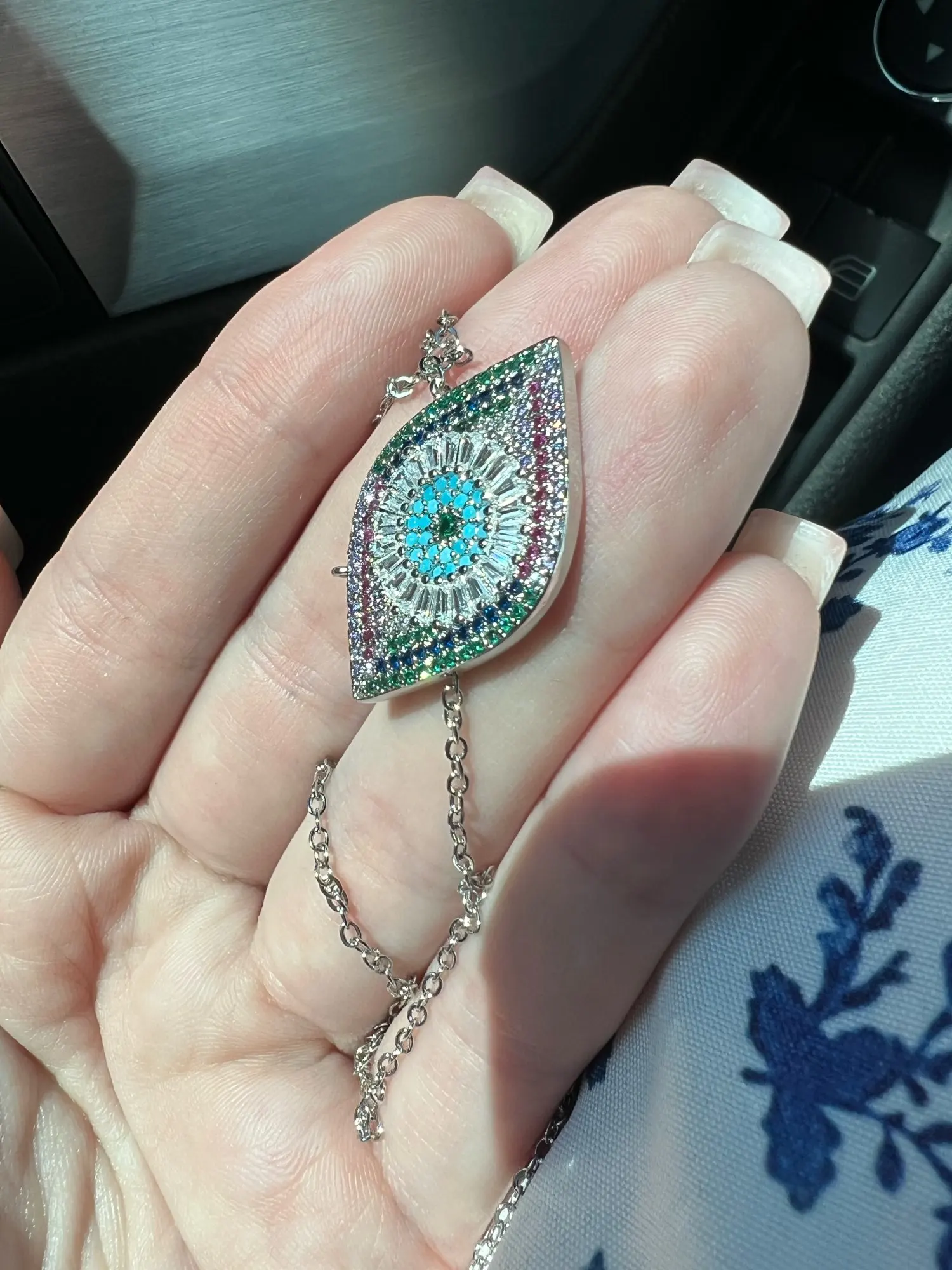 Підвіска підкорила моє серденько. Камінці просто неймовірно сяють не тільки на сонечку, а в в тіні. Око не маленьке і виглядає дуже круто. Цепочка тендітна і красива. Розмір регулюється. Є проба. Дуже мені сподобалась, замовляю прикраси в цього продавця не вперше і завжди крута якість. Рекомендую!