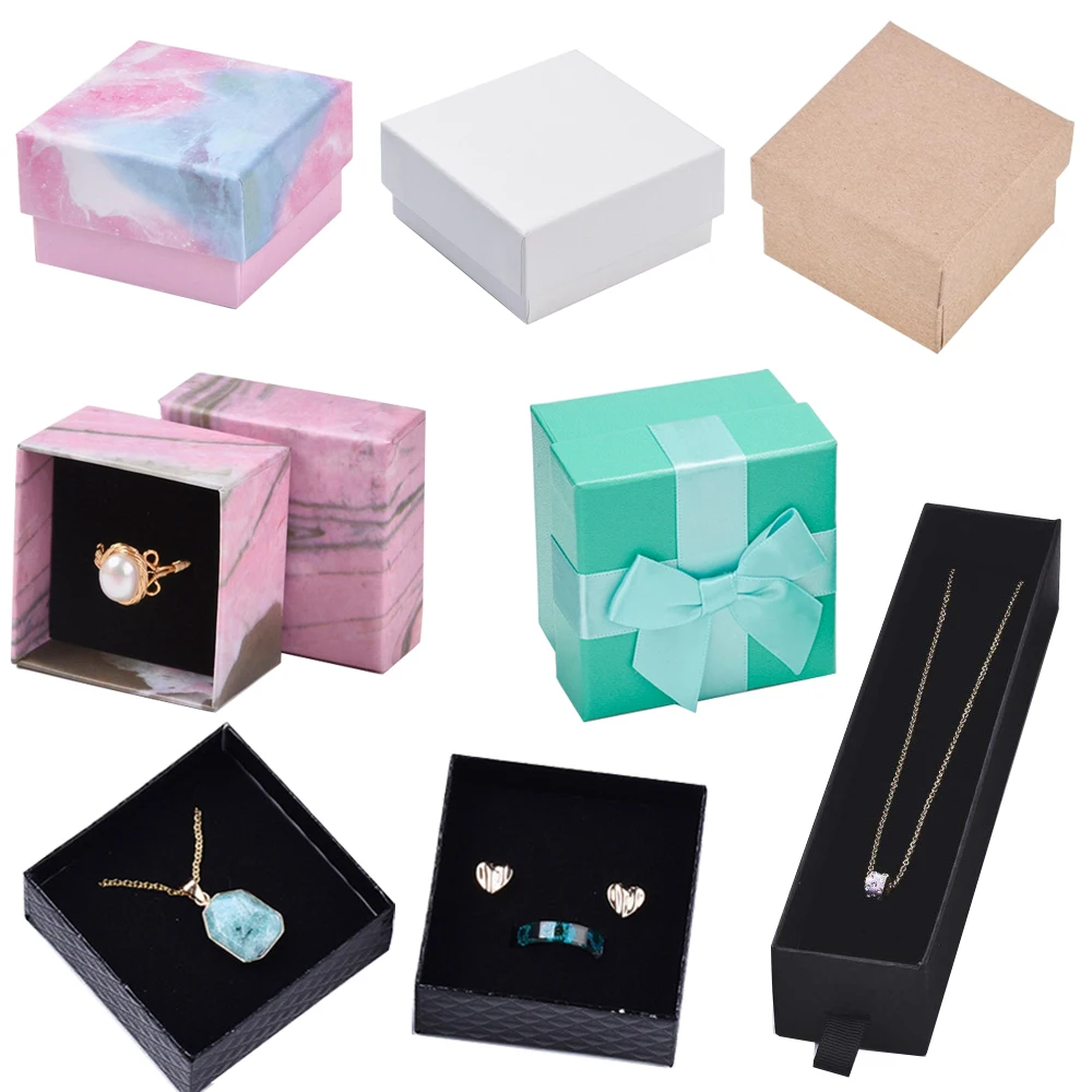 6 шт., картонные шкатулки для украшений Pandahall, для ожерелья, браслета, сережек, подарочная упаковка, атласная лента, губка, прямоугольная коробка, подарок F95