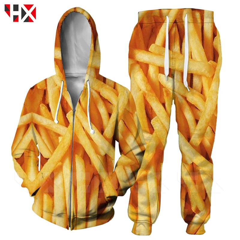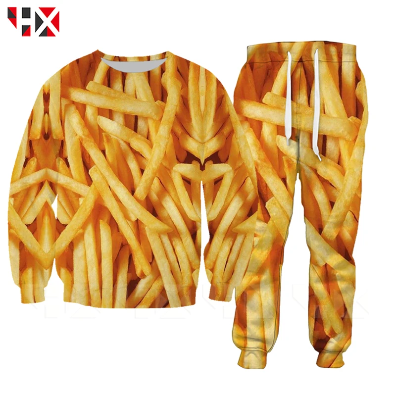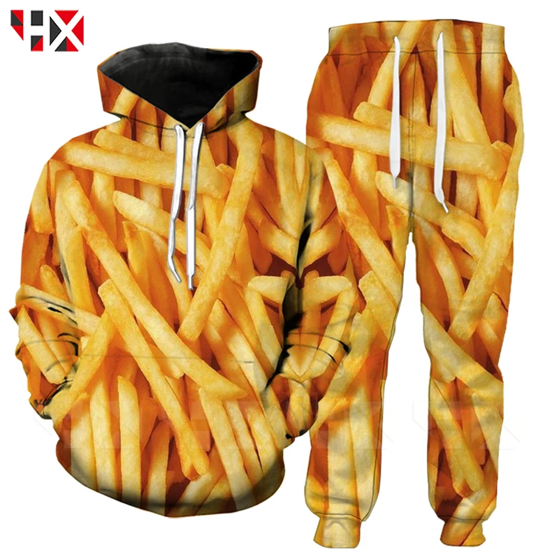 Осенний тренд HX, толстовка с капюшоном в уличном стиле, комплект, повседневный комплект унисекс в стиле Харадзюку С 3D принтом картошки фри в стиле хип-хоп HX465