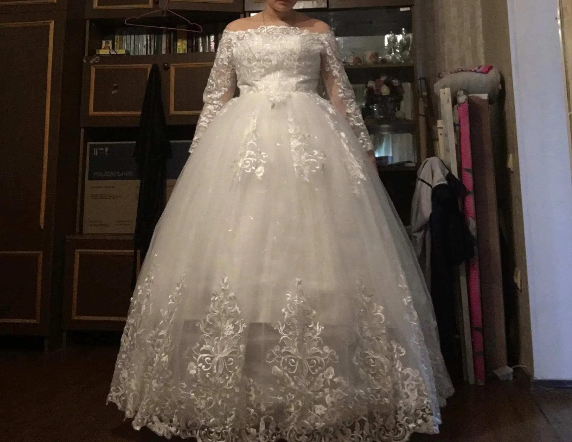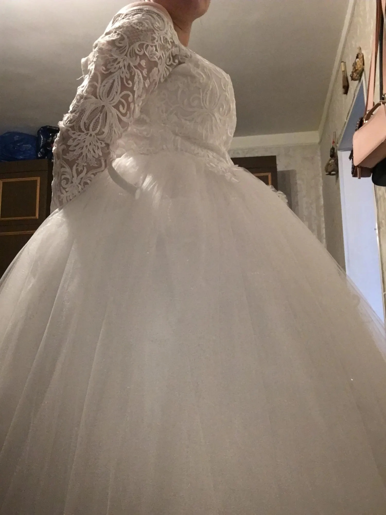 Я его надевала сама, мне некому было помочь, оно очень пышное и красивое, на фото под низом кольцевой подъюбник. Качество платья 10000 из 10. В магазине бы такое тысяч 40 стоило... размер я не помню какой выбирала, смотрела по таблице размеров и меркла грудь бёдра и талию и все сошлось, я беременна на 7 мес, и мне нигде не давит, пришло за 13 дней, отгрузка 5-7 дней. Всем советую, продавец отвечает всегда на вопросы, к тому же платье ещё можно отлигулировать на 1-2 размера